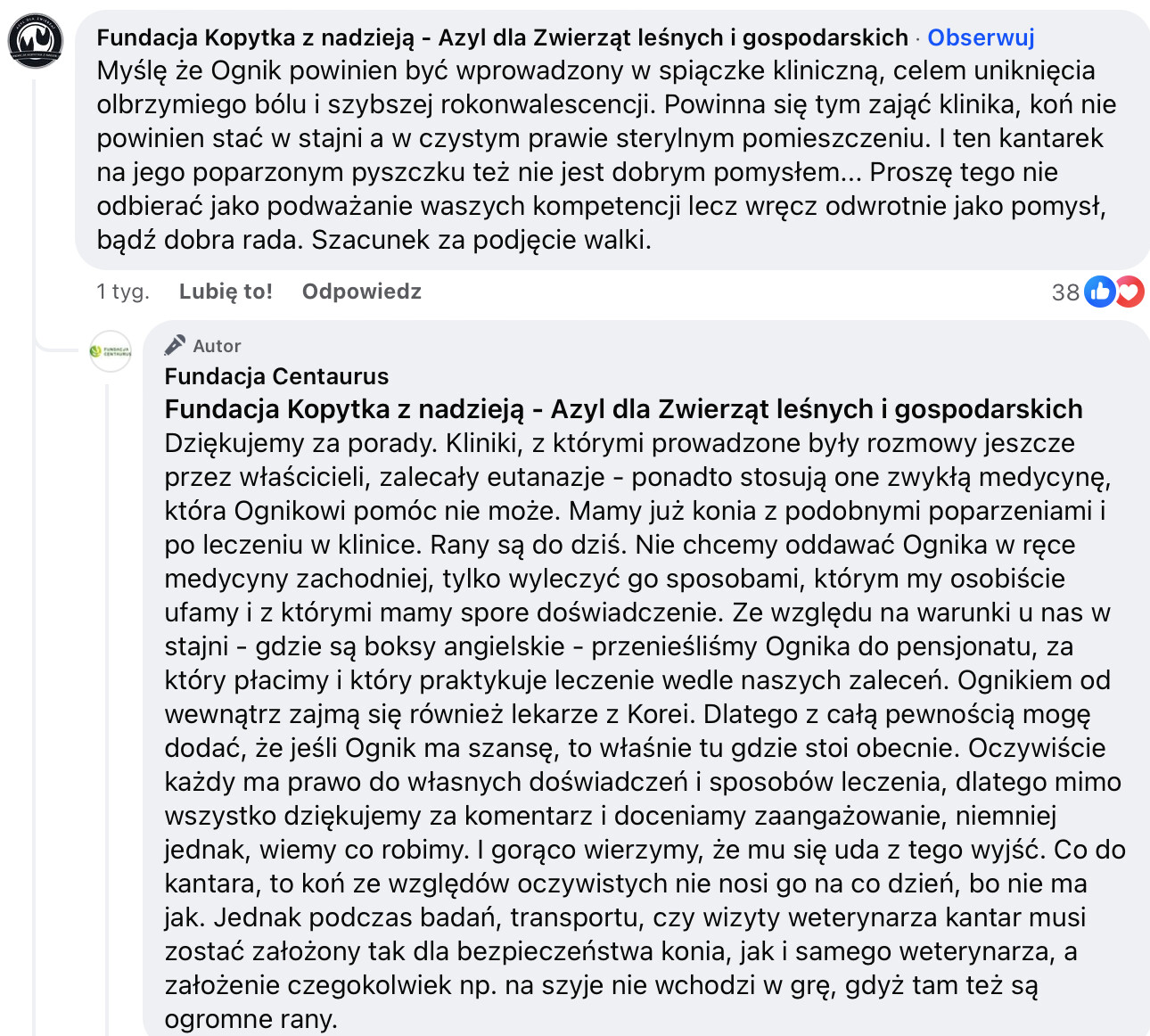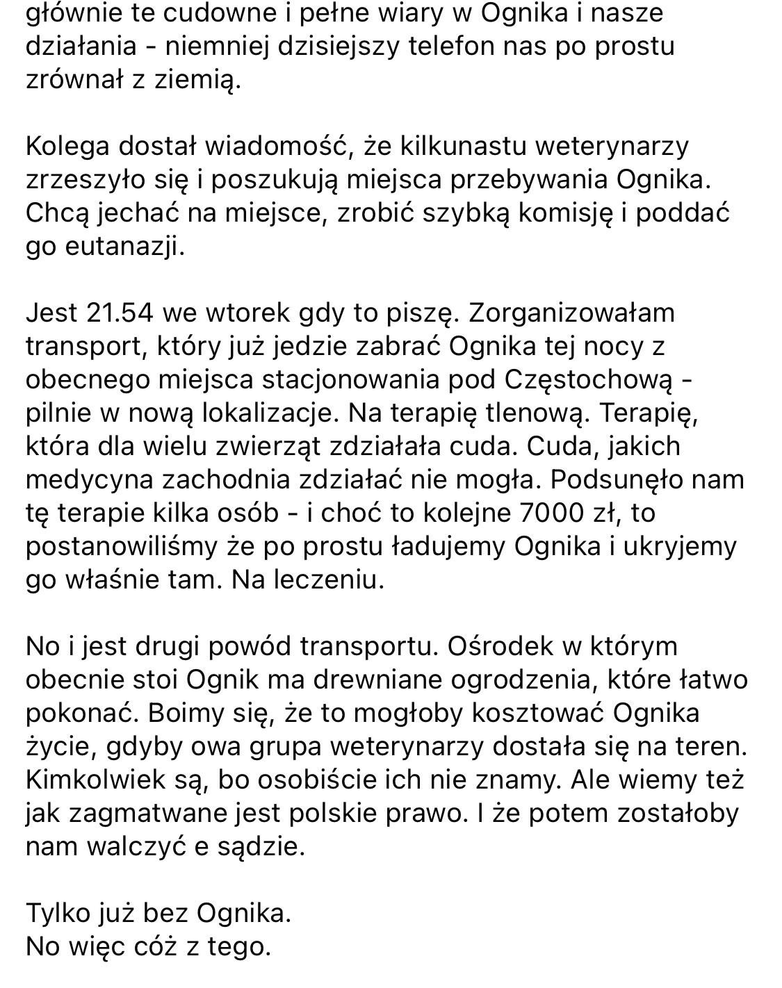 Wiem, że dyskusja dotyczącą konia Ognika toczyła się pierwotnie w innym wątku, ale chciałam zapytać w właściwym- czy ktoś niezablokowany na fb ma jakieś nowe wieści?