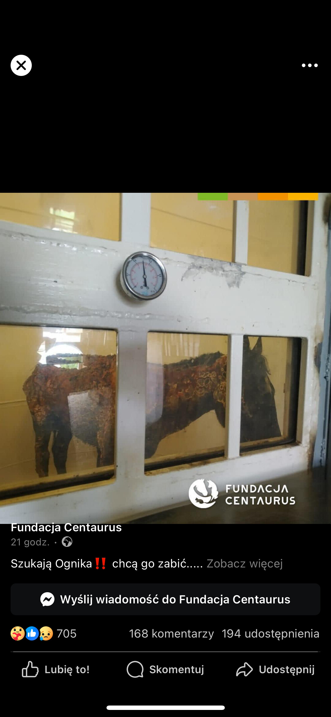 Mi się wyświetlił post ze zdjęciem konia w jakiejś komorze chyba tlenowej i informacja że został przewieziony bo jakaś grupa weterynarzy spisała petycje aby konia uśpić więc państwo centaurus zbiera teraz na ochronę dla konia