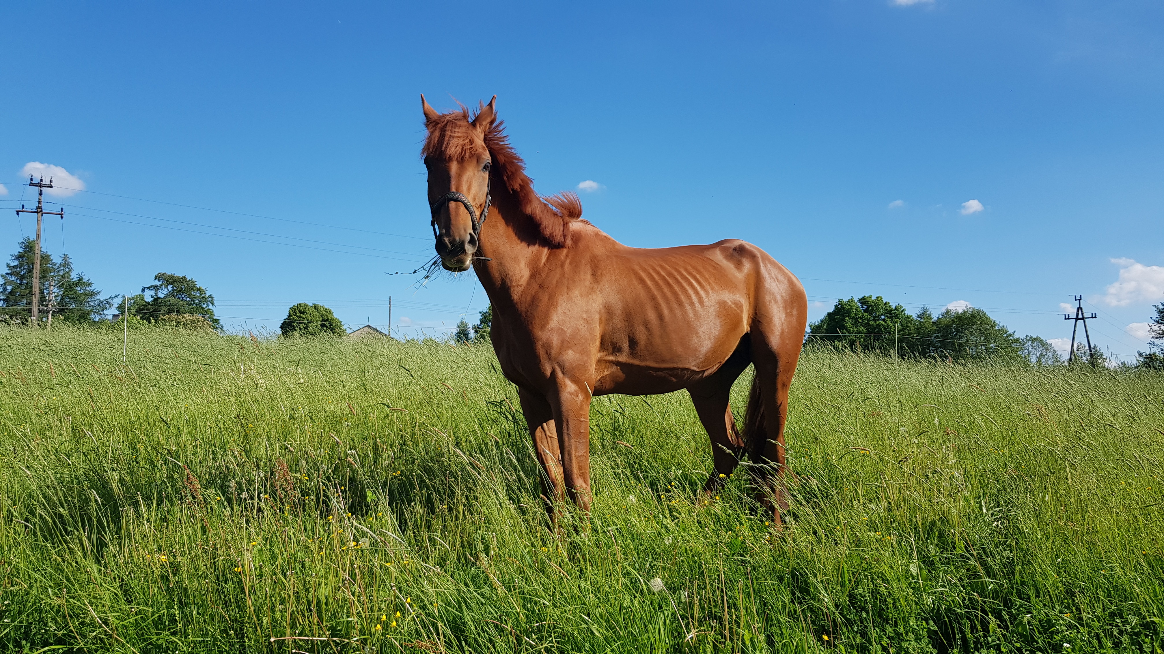 Koń był chudy, po 3ch latach walki wygląda dobrze, a wet stwierdził żeby więcej nie tyć bo żebra już zaczynają być trudno wyczuwalne (ale nie bardzo trudno, tylko że jest już ok).