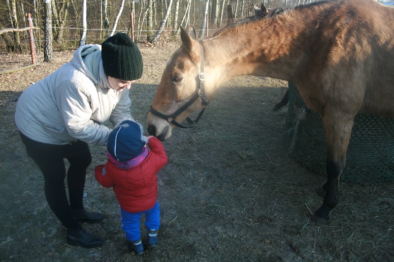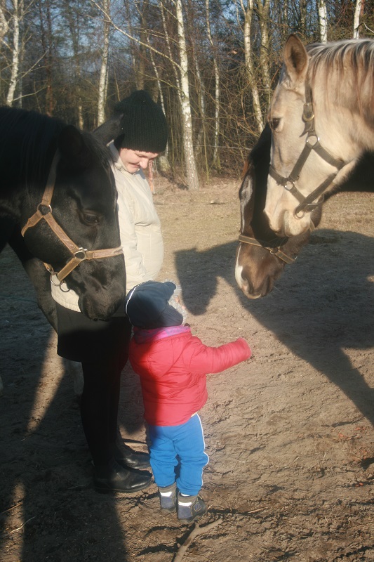 Maea, poczekaj na lepsza pogodę i działajcie. Nie wiem jakie macie warunki w stajni, my mieliśmy bardzo dobre. Na gorze były pokoje do dyspozycji pensjonariuszy wiec mogłam spokojnie karmić i przewijać w warunkach zbliżonych do domowych, a jak było chłodniej to młody nawet miał drzemkę na gorze w pokoju a mąż przez wielkie okno wychodzące na hale patrzył jak jeżdżę🙂 Powodzenia