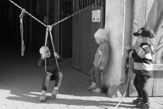 Bogdan, ekipa nie dej sie 😉 Na drugim zdjeciu to, co biedne dzieci z tylko jedna hustawka na podworku lubia robic najbardziej, czyli hustac sie na uwiazie-normalna hustawka jest dla mieczakow 😉
