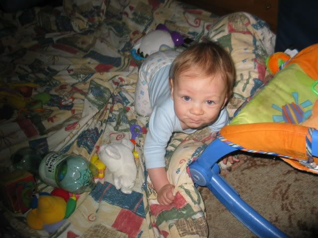Mojego dziecka nie można spuścić z oczu na sekunde... próbuje włazić sam na łóżko, do fotelika, interesuje go wszystko to co nie powinno jakaś masakra się robi bo jak powiem "nie" to jest histeria jak jasna ch...era już nie wiem jak to ogarnąć. No i pare fot małego łobuza 🙂