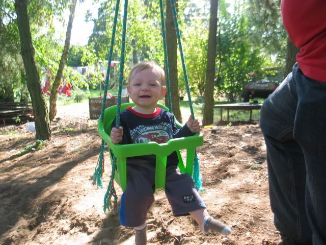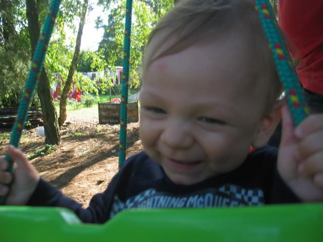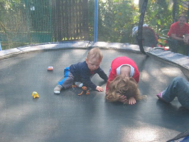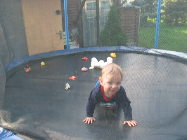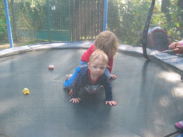 My wróciliśmy z weekendu u mojego ojca i Bobas był w raju ponieważ mam trzy młodsze siostry przyrodnie i był w centrum zainteresowania, a trampolina i huśtawka były głównymi atrakcjami. I mała fotorelacja: Jasiek w swojej zagrodzie ja latam!!! ważny jestem!!! wesołe stadko w otoczeniu kobiet 😉