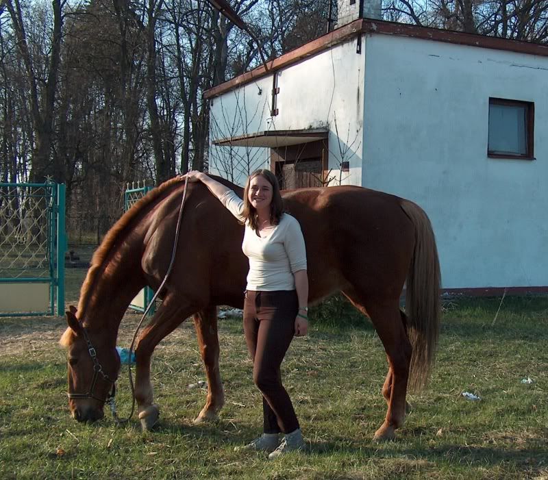 cały czas gdy byłam z nim docieraliśmy się nawzajem. raz było lepiej, a raz gorzej. mam nawet na ramieniu bliznę od ugryzienia. ale w końcu osiągnęliśmy to, że do grona osób, które w 100% akceptował w swoim stanowisku (właścicielka - instruktorka i jej tata, który zajmował się karmieniem) dołączyłam i ja 🙂 tworzyliśmy naprawdę zgraną parę. pozostał dzikusem, ale pozwalał na coraz więcej, łagodniał. w jeździe ciągle był typem "niepokornym", ale kiedy ja wsiadałam na niego widać myło, że byliśmy to MY, nikt inny 🙂 głupie radości, typu zagalopowanie ze stój, kiedy innym rozpędzał się do niewyobrażalnego kłusa, ale za nic nie chciał galopować. pierwsze skoki, kiedy innym zatrzymywał się, albo spływał. z czystym sumieniem mogę powiedzieć, że ten koń nauczył mnie jeździć i kochać. w pełni zrozumiałam znaczenie słów "nie kocha się za coś, ale pomimo że" nauczyłam się cieszyć z drobiazgów 🙂