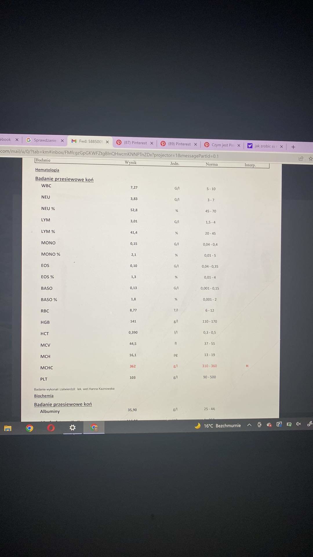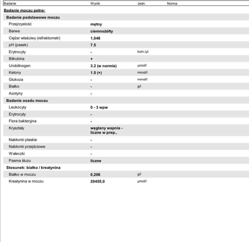 Otrzymał wyniki badań moczu mojego konisia, poszukuje mądrych głów w interpretacji, wet dopięto w przyszłym tygodniu... Białko i kreatynina ktoś wie jaka norma?