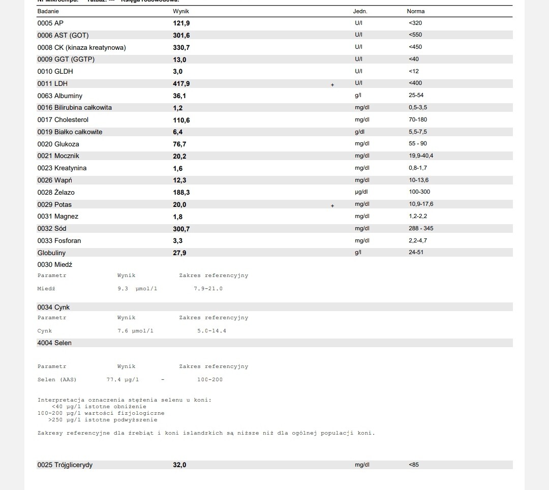 Jeszcze na samej górze wątku pytałam o wysoki selen. U nas się okazało być to błędem VetLabu.