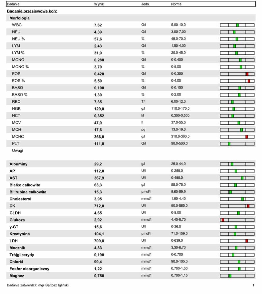 Wiadomo, że nie leczy/ nie suplementuje się kartki z wynikiem, tylko konia - nie chcę żeby moja interpretacja wybrzmiałą "dramą".