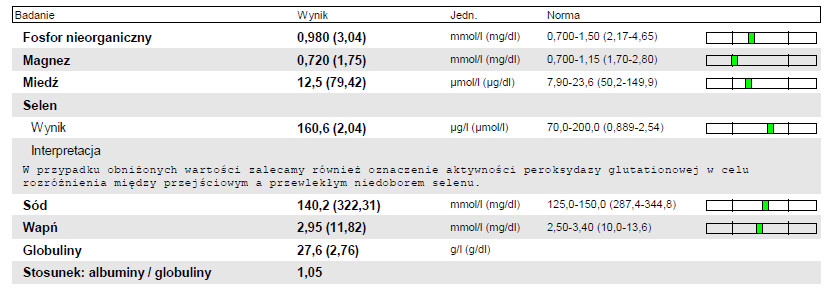 Ja mam inne zdanie niż to co tu zostało napisane. Wg. mnie to nie są "dobre wyniki". Owszem, dużo jest "na zielono", ale jednak przy dolnej granicy są parametry ze sobą powiązane i powiązane z biodostępnością żelaza.