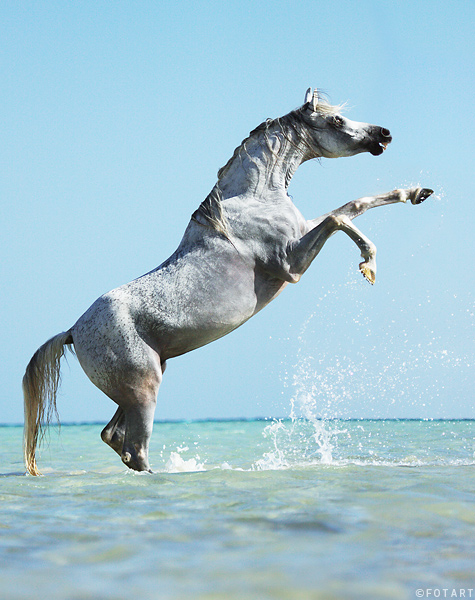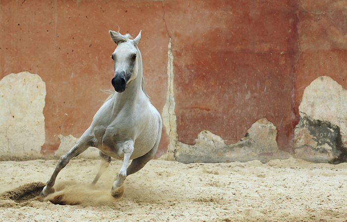 Arabiszcze mojej kumpelki: siwa klaczka ... obecnie ma około 5 lat, ślepa na jedno oko, bez wiekszosci zębów (jakas wada zgryzu)., temperamentna ale pod włascicielka chodzi jak w zegarku 🙂 do zatrzymania z kazdego chodu 🤣 Kochana i piekna 🙂 Szybko sie uczy...mimo swojej slepoty niezle sobie radzi z samochodami i ruchem ulicznym... Cudenko🙂Niestey mialam okazje tylko raz na niej siedziec...i raz dostac kopa w kolano w terenie 🤣 🤔