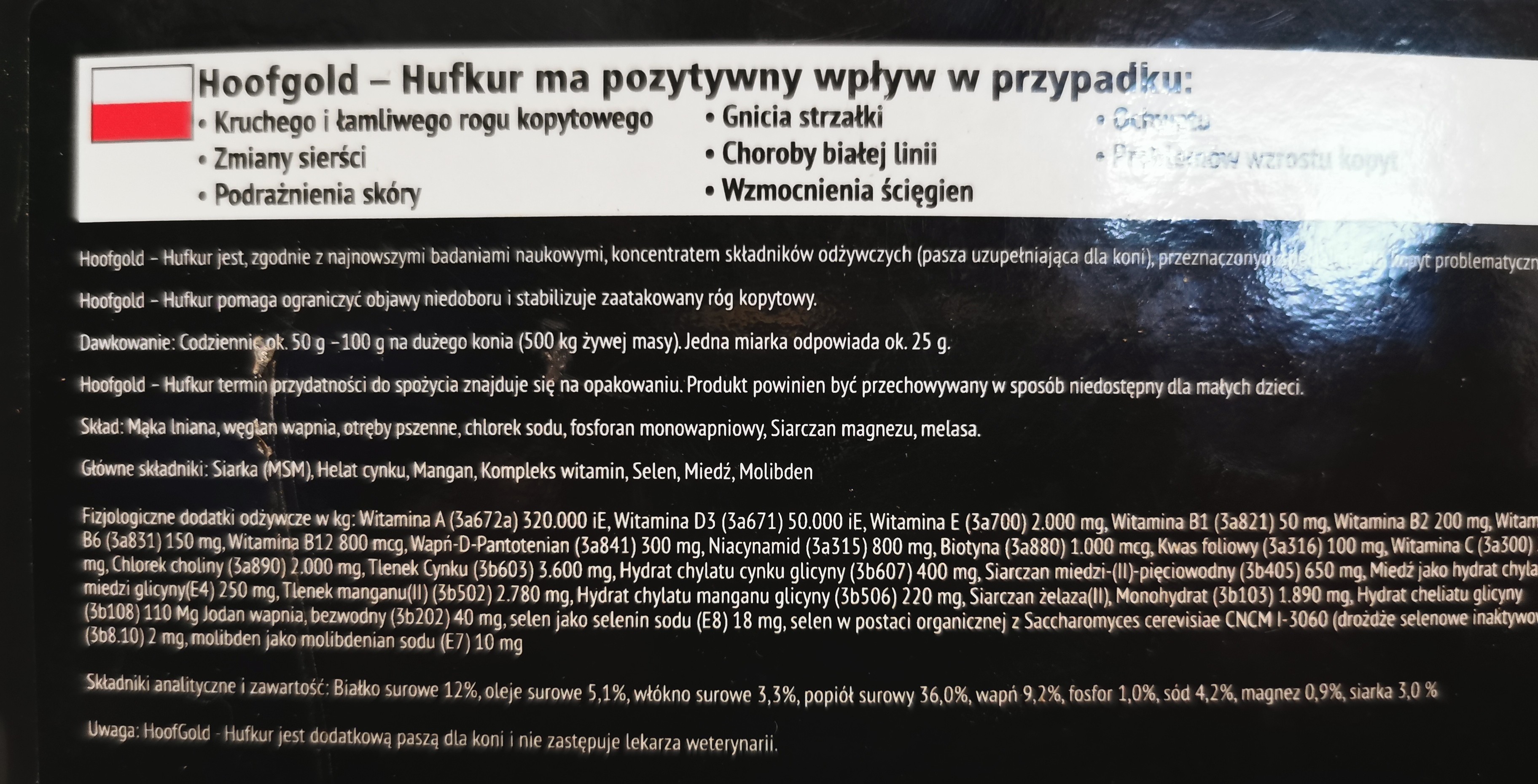 Ja podaję mojemu hufkur regularnie, od dość dawna. Miał b słaby róg dodatkowo w kiepskim stanie, bo regularnie ściągał sobie w boksie podkowy (przydeptywal jedną nogą drugą i ściągał podkowy). Ściana jest obecnie zdecydowanie mocniejsza, przyrost spory. Po operacji oczyszczania ropnia od strony podeszwy kopyto zrosło b szybko. Mogę też bez problemu rozkuć zad i koń chodzi bez macania. Także ja polecam.