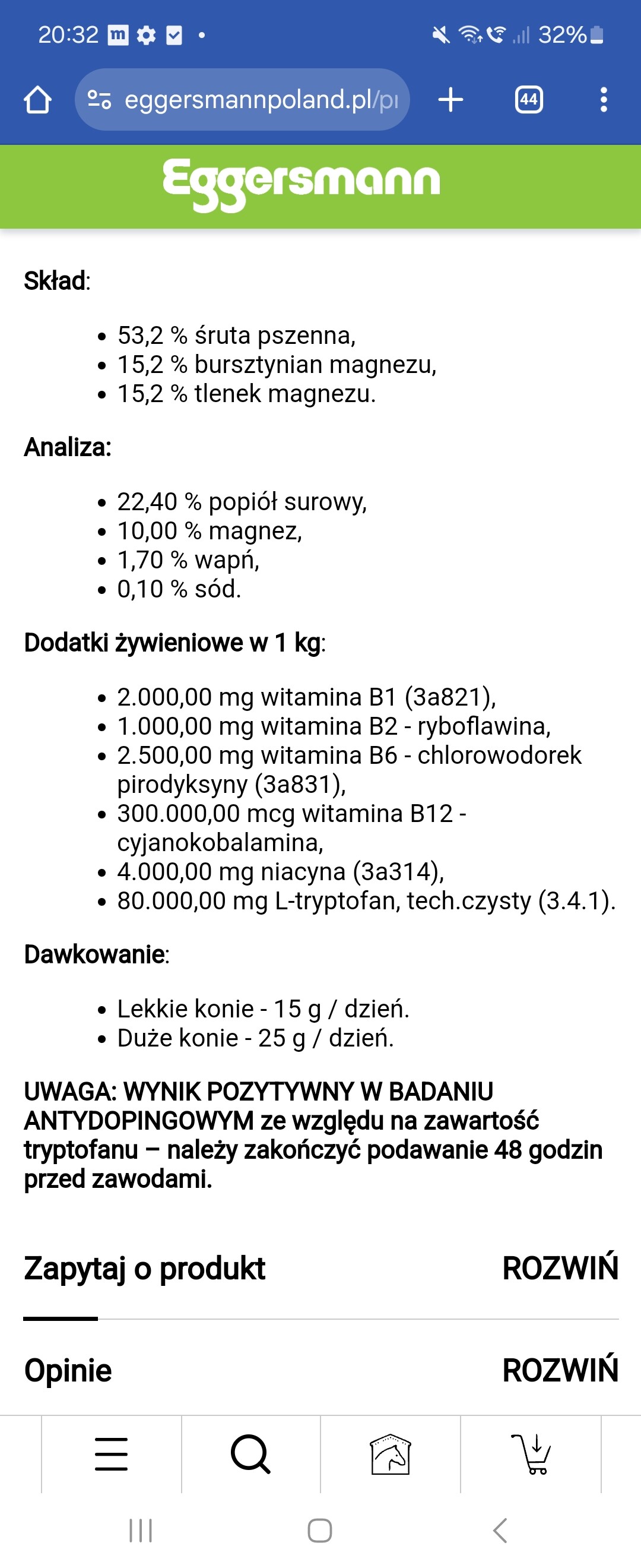 Perlica, ja od jakis 3 tygodni stosuje Equipur-tryptomag, z bardzo fajnymi efektami. Koń który ostatnio był mocno patrzący - obecnie „olewa” większość rzeczy