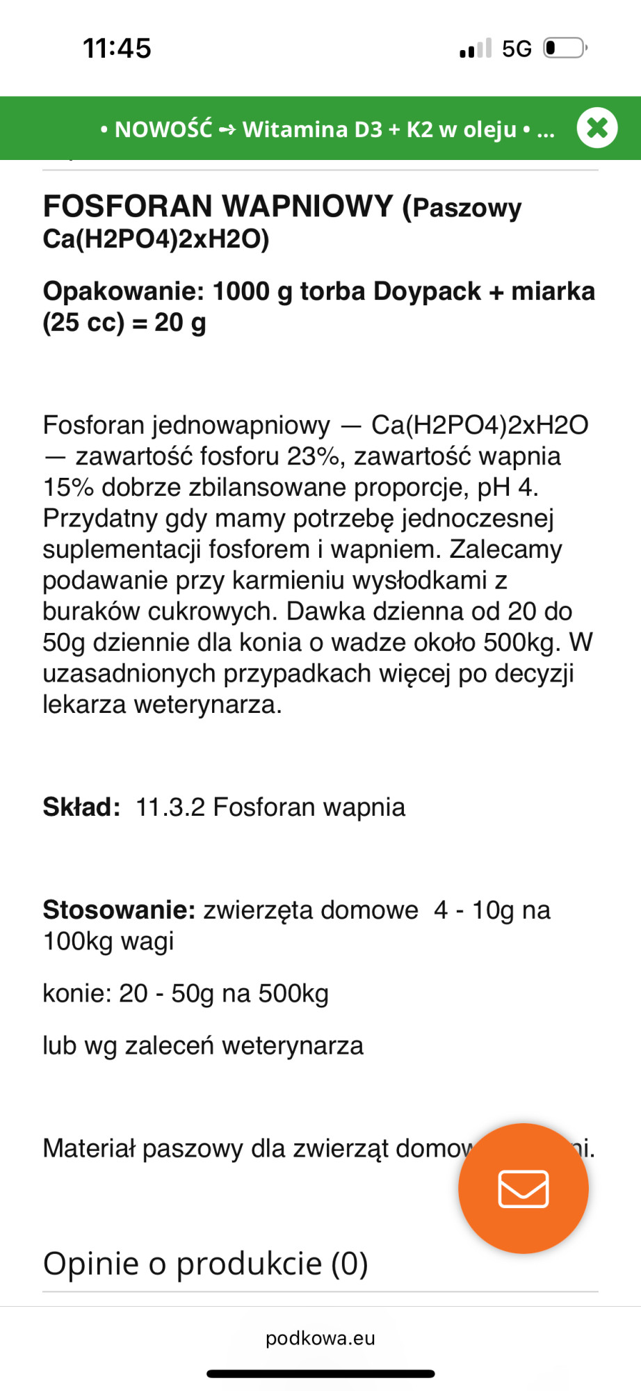 Lootra, - no pytanie jaki ma stosunek Ca:P ten fosforan wapniowy, bo jak wincyj wapnia to nie pomoże, bo właśnie to leży 😉 Zwykle jest problem z wapniem, mało kiedy w drugą stronę.