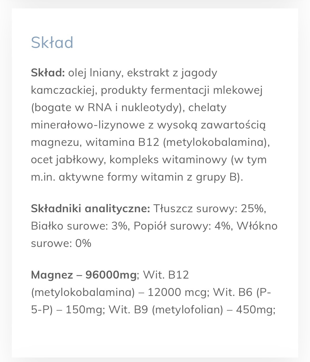 Mój koń nie ma niedobrów, tylko magnez jest blisko minimum, a kobyłka jest dość żywa, więc zrobię jej przed zimą taką suplementację. Ale dziękuję za informację, że się sprawdził, bo to jednak ta sama firma.
