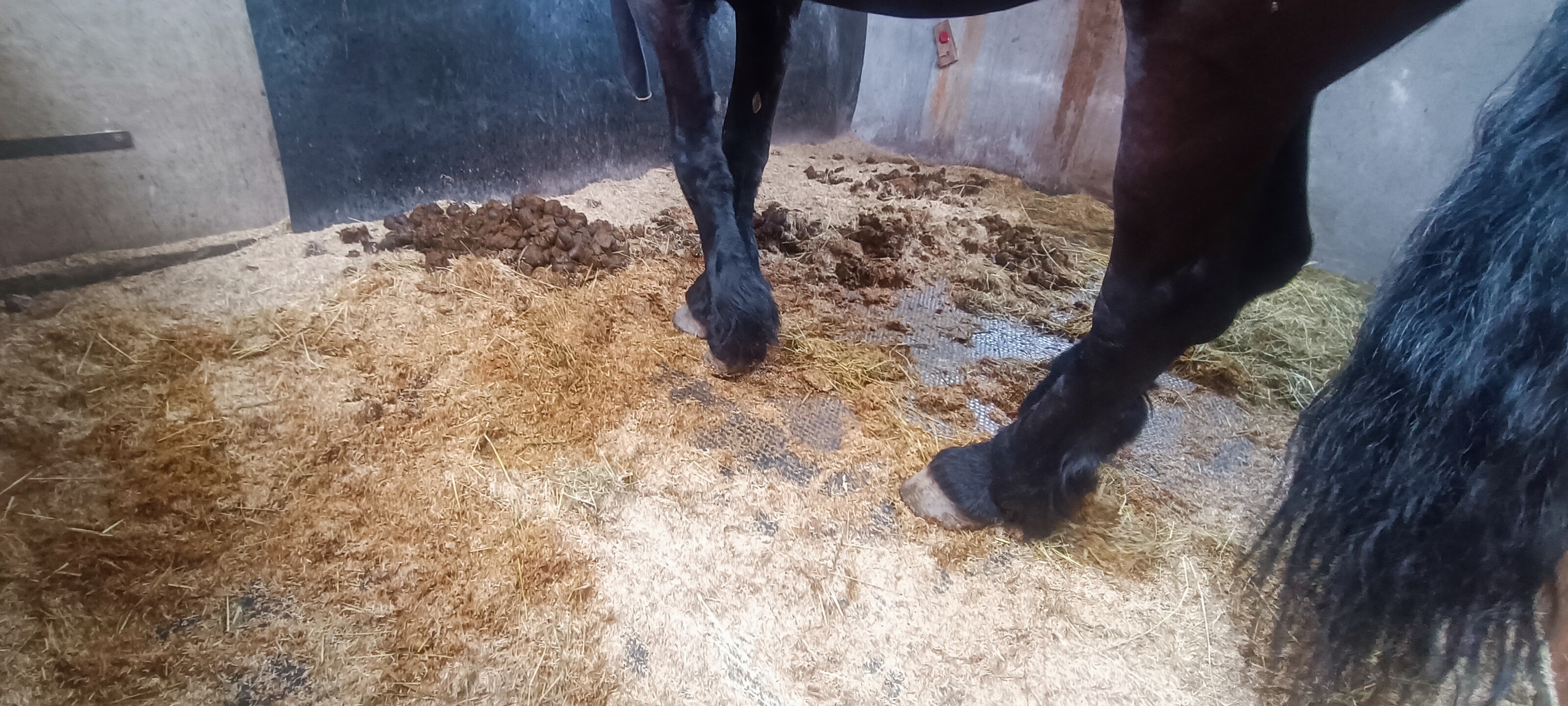 No i te 3 baloty na pierwsze ścielenie do boksu 3x4 to wystarcza spokojnie i nawet myślę, że przy matach to 2,5 byłoby ok, bo warstwa była na pół lekko przerośniętego kopyta (jutro mamy kowala, a kobyle kopyta ewidentnie poczuły wiosnę)