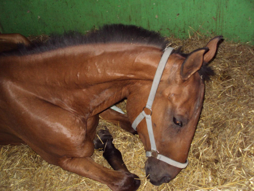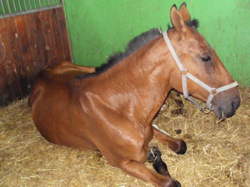 Złą wiadomością jest to, że byłam wstrętna, nie dobra i obudziłam konia, ba ! nawet zmusiłam żeby wstał by zobaczyć opatrunki i kopytka które są zrobione ale nie wiem jak dokładnie, bo nie chciałam go wyciągać z bosku by zobaczyć a jakoś nie miałam serca podnosić mu te schorowane nogi.
