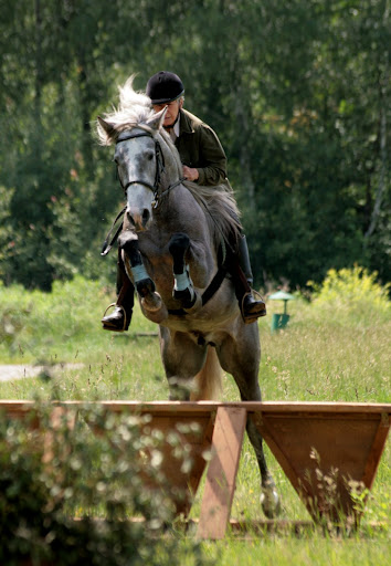 Kasztan Tone trafił do nas niedawno, jest dopiero zajeżdżany. Siwy Polaco startuje już w konkursach ujeżdżenia, skoków i WKKW w klasie LL z powodzeniem 🙂 Wieczorem jak dorwę jakieś zdjęcia to wrzucę.