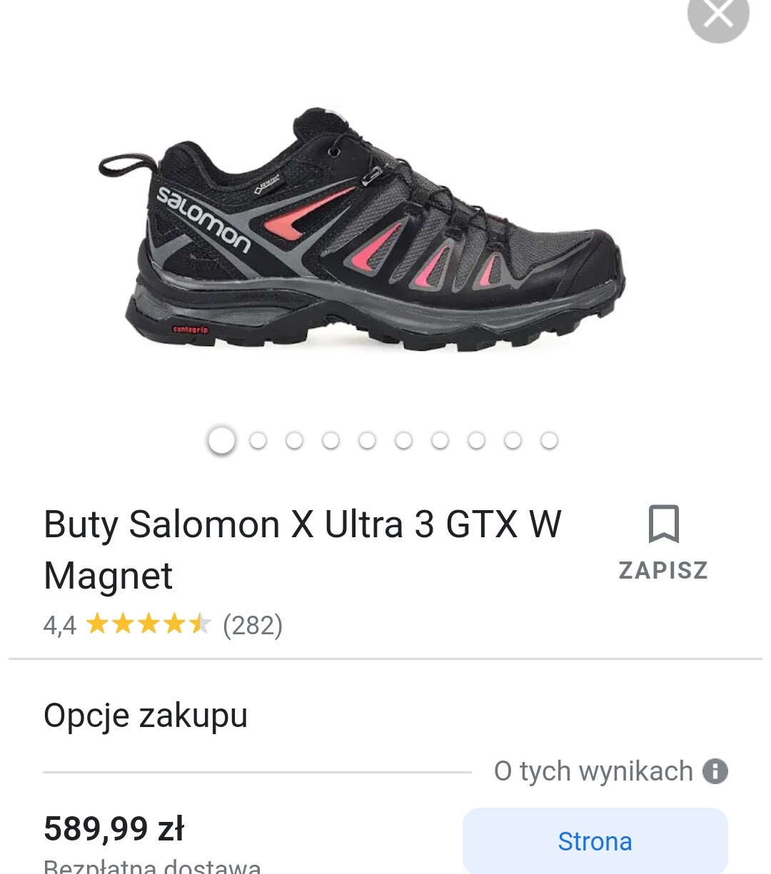 Ja jestem wielką i oddaną fanką salomonów x ultra GTX, mam teraz drugą parę (pierwszą kupiłam jakoś 8 lat temu, potem oddałam mamie, bo dostałam pod choinkę nowy model - śliczne malinowe; obie pary w regularnym użytku i wciąż na chodzie).