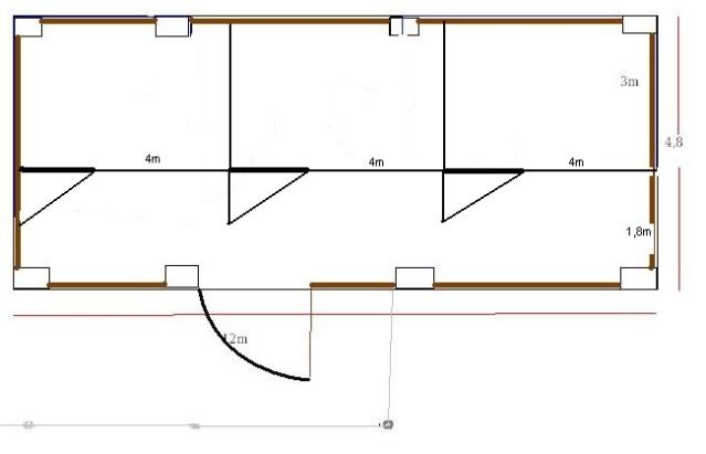 no tak , szerokości jest 4,8 odjąć to co zabierze ocieplenie i deska no i konstrukcja boksu więc po szerokości nie ma szans na 2 boksy. ja to sobie wymysliłam tak, ale jak macie lepszy pomysł to jestem otwarta na propozycje architekt ze mnie marny ale tak na szybko w Paintcie zrobione w tej wersji jest więcej miejsca do wykorzystania na sprzęt , siano i paszę