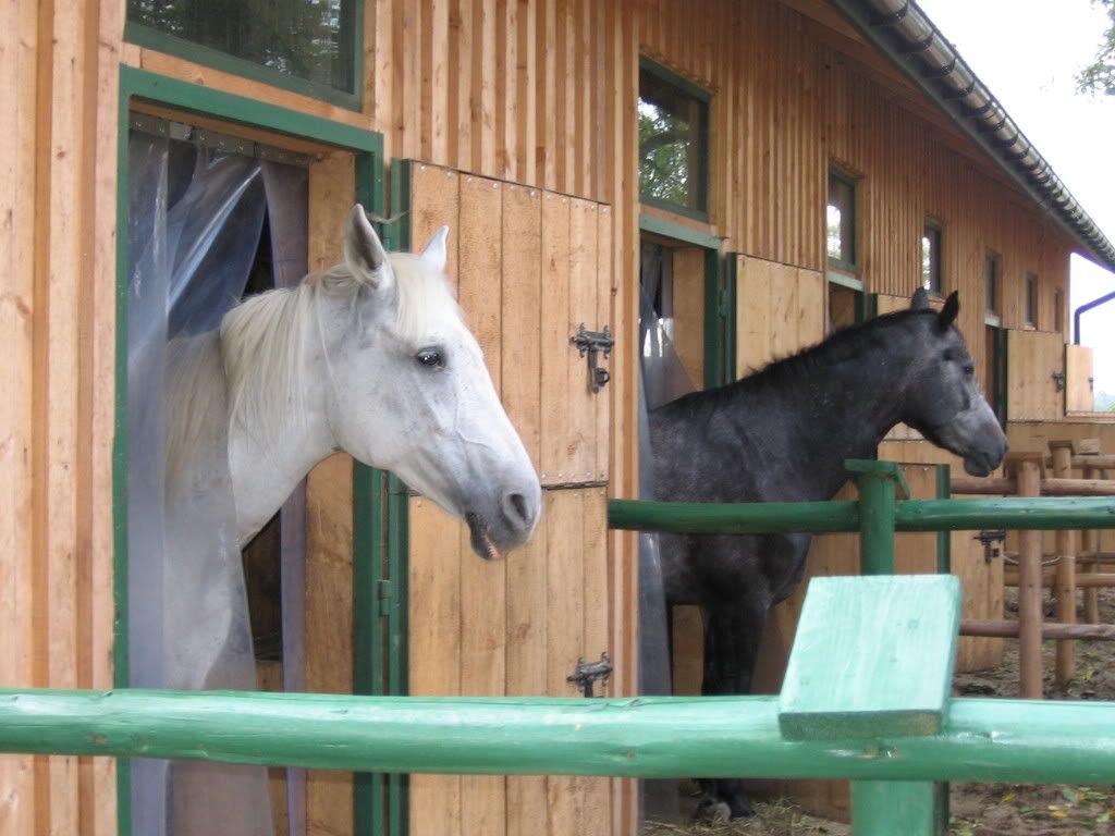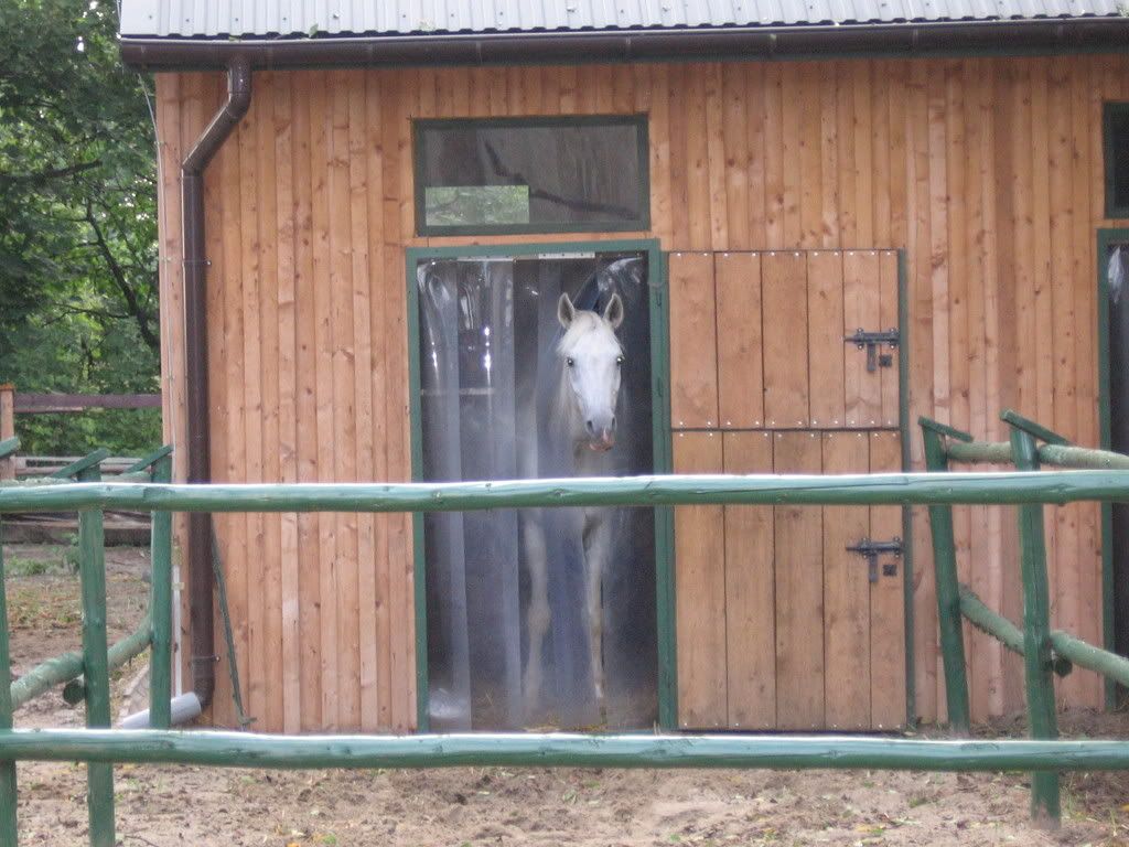 W stajni temperatura pozostaje taka jak przy zamknietej stajni a konie maja wybór gdzie chcą być, w środku czy na zewnątrz.