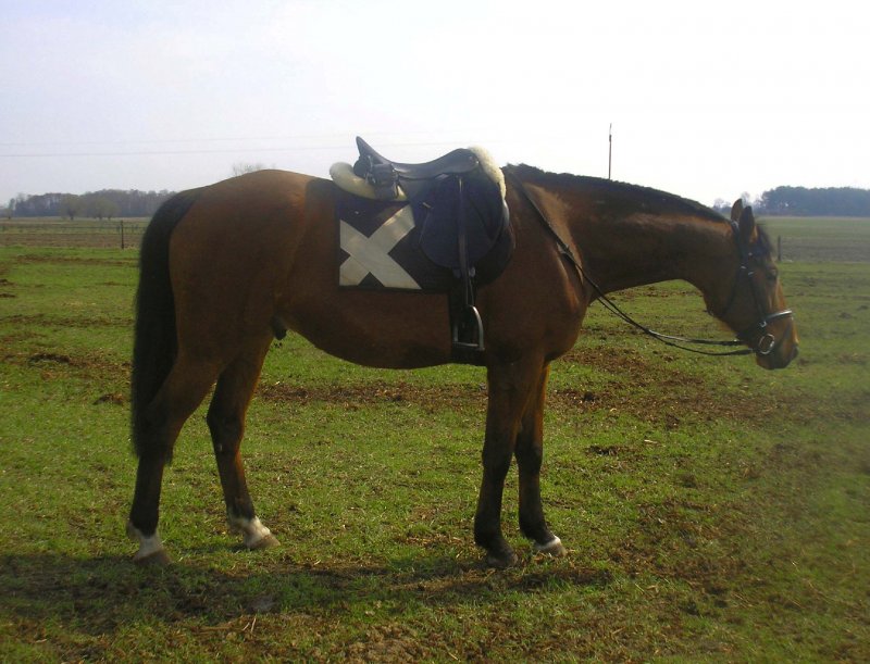 Niestety tu za wiele nie uda się uratować, fotka jest bardzo zakompresowana, straszny szum w każdym kanale koloru i jakiekolwiek zmiany dają niestety łaty 🙁 Nie wiem czy wstawiać - jest sporo fotek tego modelu czapraka na stronie i są niezłe. Euro star Cross In - brązowy. Kiepskie kolory, ale innych nie będzie-czaprak sprzedany. Chyba, że ktoś umie z nimi powalczyć.