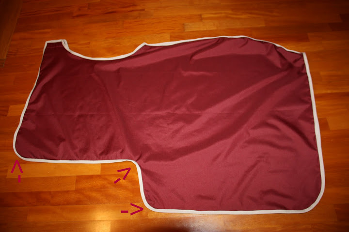 1.Z materiału którego chcemy uszyć czaprak odrysowujesz kształt czapraka tylko musisz pamiętać o tym czy chcesz go bardzo pikować czy też nie. Jeśli chcesz bardzo to musisz więcej o jakieś 8-5cm więcej z każdego boku wyciać, a jeśli mniejsze pikowania to, gąbki ma być mniej. 2.potem chcesz mieć z lamówką to: a) przykładasz tak jak byś miała już gotowy czaprak b) i część "czapraka"(który nie jest jeszcze zrobiony) przykładasz tzn. -materiał gąbka materiał i zszywasz wszystko razem na około potem drugą część czapraka tak samo zszywasz