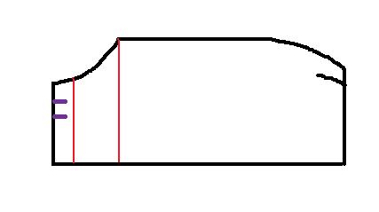 3. spiąć połowy razem szpilkami, trzeba odnieść się do dolnego rogu padu, w sensie tam złożyć równo, resztę można potem przyciąć 😉 rysujemy górną linię padu, oraz przód