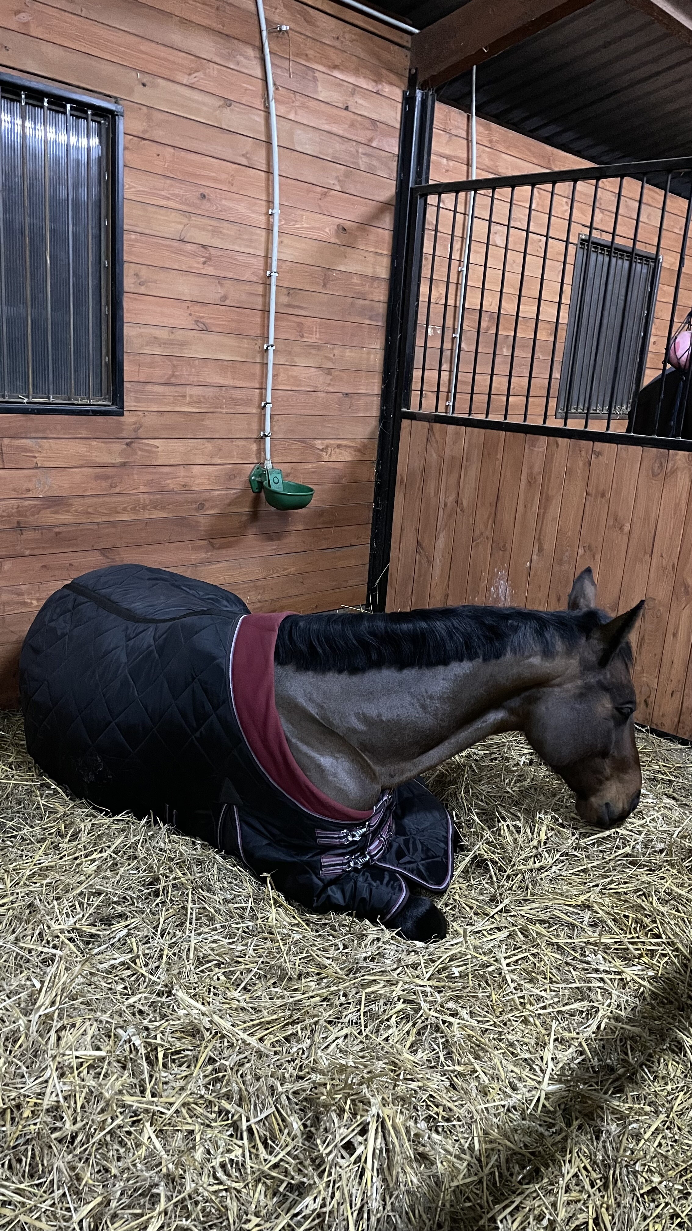 I to jest mój koń praktycznie codziennie popołudniami, nawet jak ludzie się kręcą po stajni. Ostatnio zaserwowała sobie drzemkę jak czekałam na kowala i mieliśmy obrażone zaspane dziecko do zrobienia, bo nie mogłam jej dobudzić xd Jak samopoczucie w stajni wpływa na relaks konia 😅