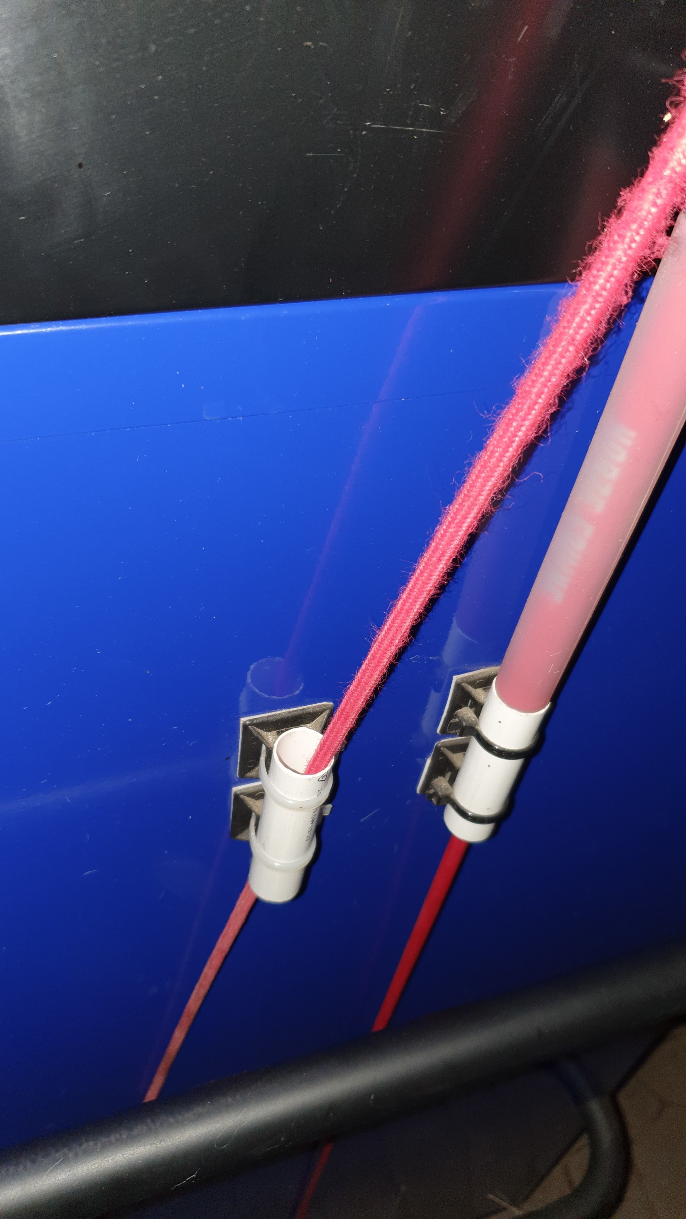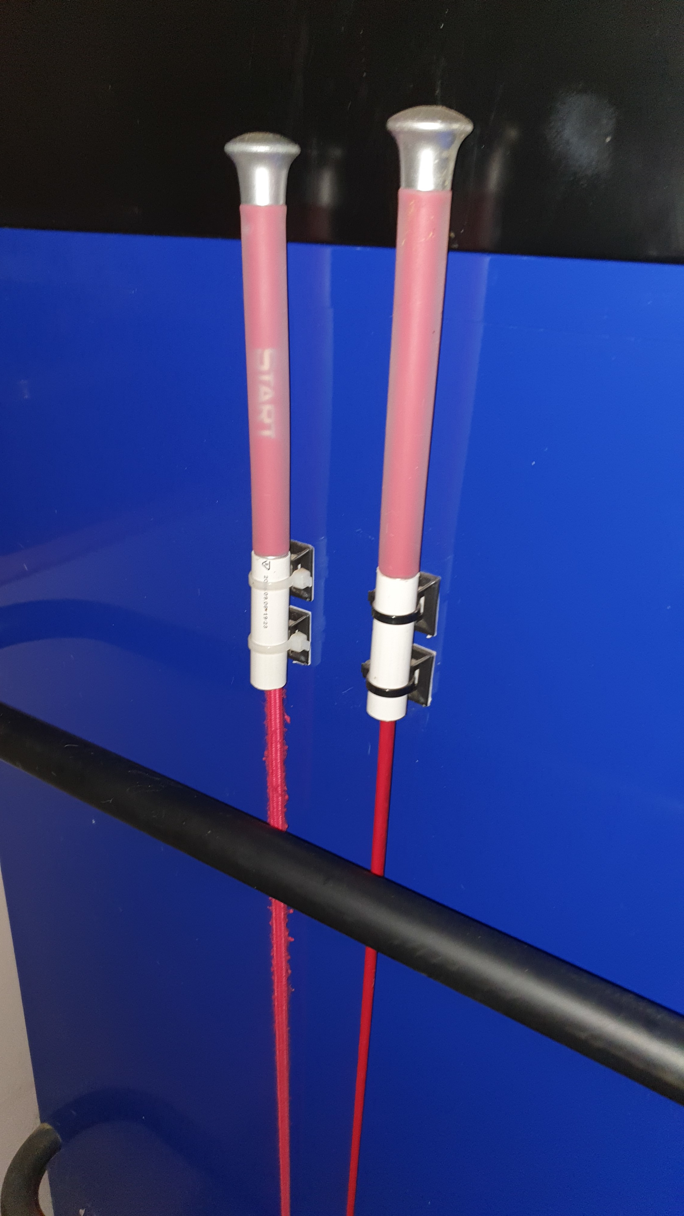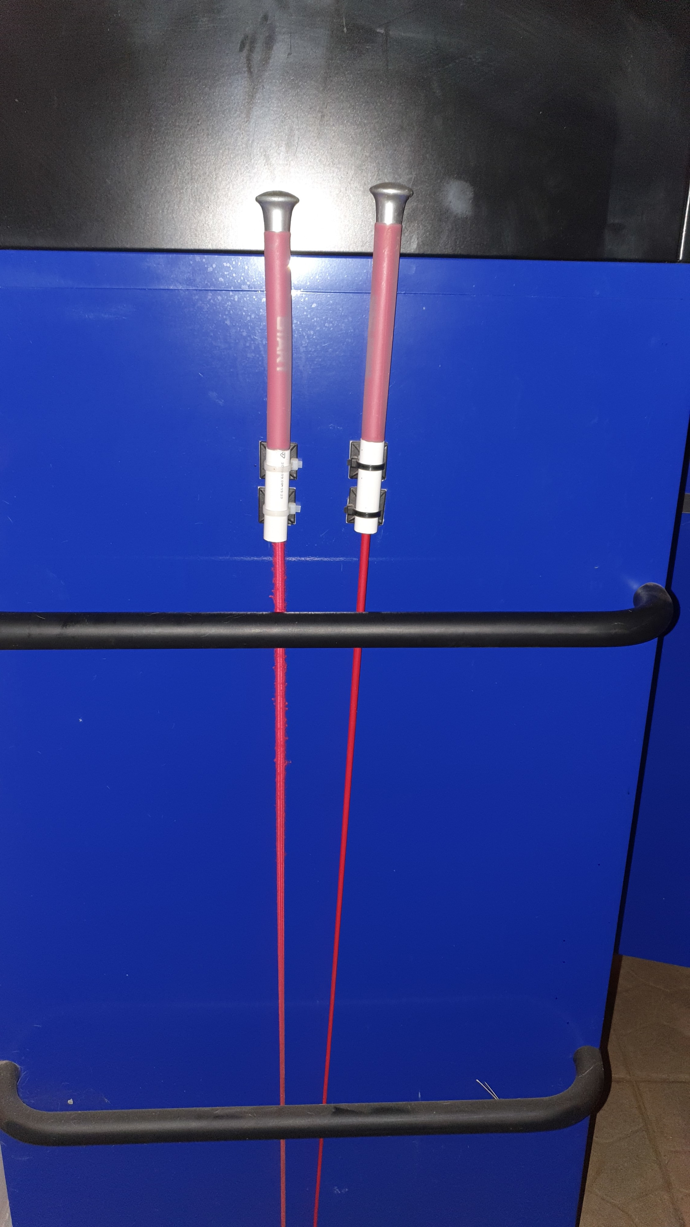Ja mam takie uchwyty zrobione. Do paki przyklejone klipsy do kabli. Do tego trytkami przymocowane rurki plastikowe. Ważne żeby średnica rurek była na tyle szeroka żeby łatwo się bat wkładało, ale nie na tyle żeby przeleciał przez nie cały.