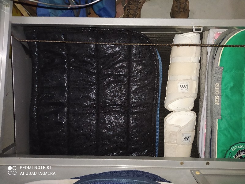 Alfako wyrobiło się w 4 tygodnie, za to numer przesyłki dostałam, jak paka już stała pod stajnią 😂 Na szczęście ktoś odebrał. Generalnie jestem zadowolona, choć nie przewidziałam, że w szufladę nie wchodzą czapraki i trochę brakuje mi wysokości w komorze, bo bat 120cm też nie wchodzi. Paka dla skoczków kurka 😝 Moja wina, totalnie o tym nie pomyślałam, gdzie pierwszą swoją pakę skopałam podobnie wymiarami - wszystko, poza wysokością, no i siodła jakby nie wchodziły 🤦 Widać człowiek się nie uczyłam na błędach. Za to w końcu nie muszę kopać jak nornik za smarami, glinkami, ochraniaczami itd, wygodnie się do wszystkiego sięga. Kombinuje, żeby sobie na zewnątrz jakiś uchwyt na bata ogarnąć, to będzie całkiem cacy.