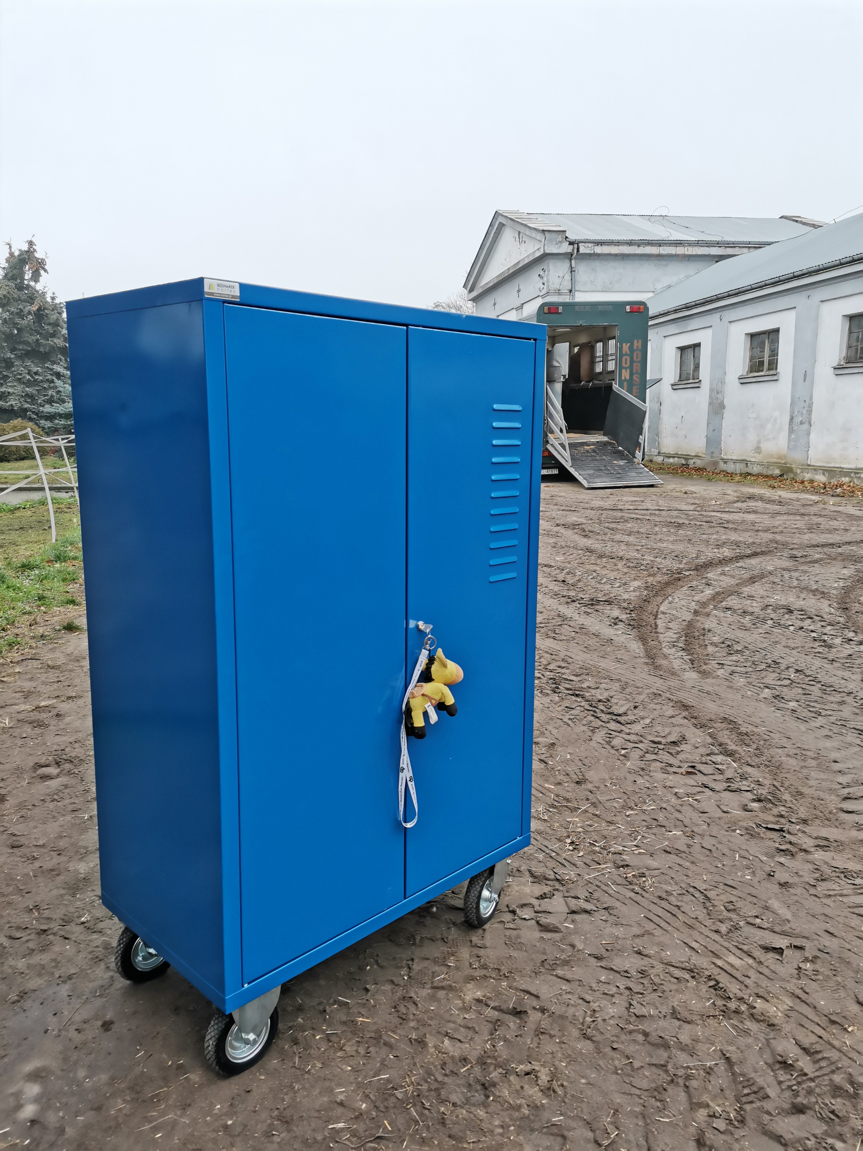 Sama paka ma 115 cm szerokości i 165 cm wysokości (z kółkami 185). Zastanawiam się tylko czy komora na siodło nie jest minimalnie za niska. Ale mam nadzieję że wystarczy jeszcze miejsca pod siodłami na skrzynkę 🙂