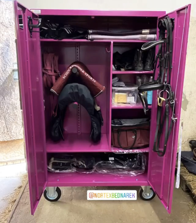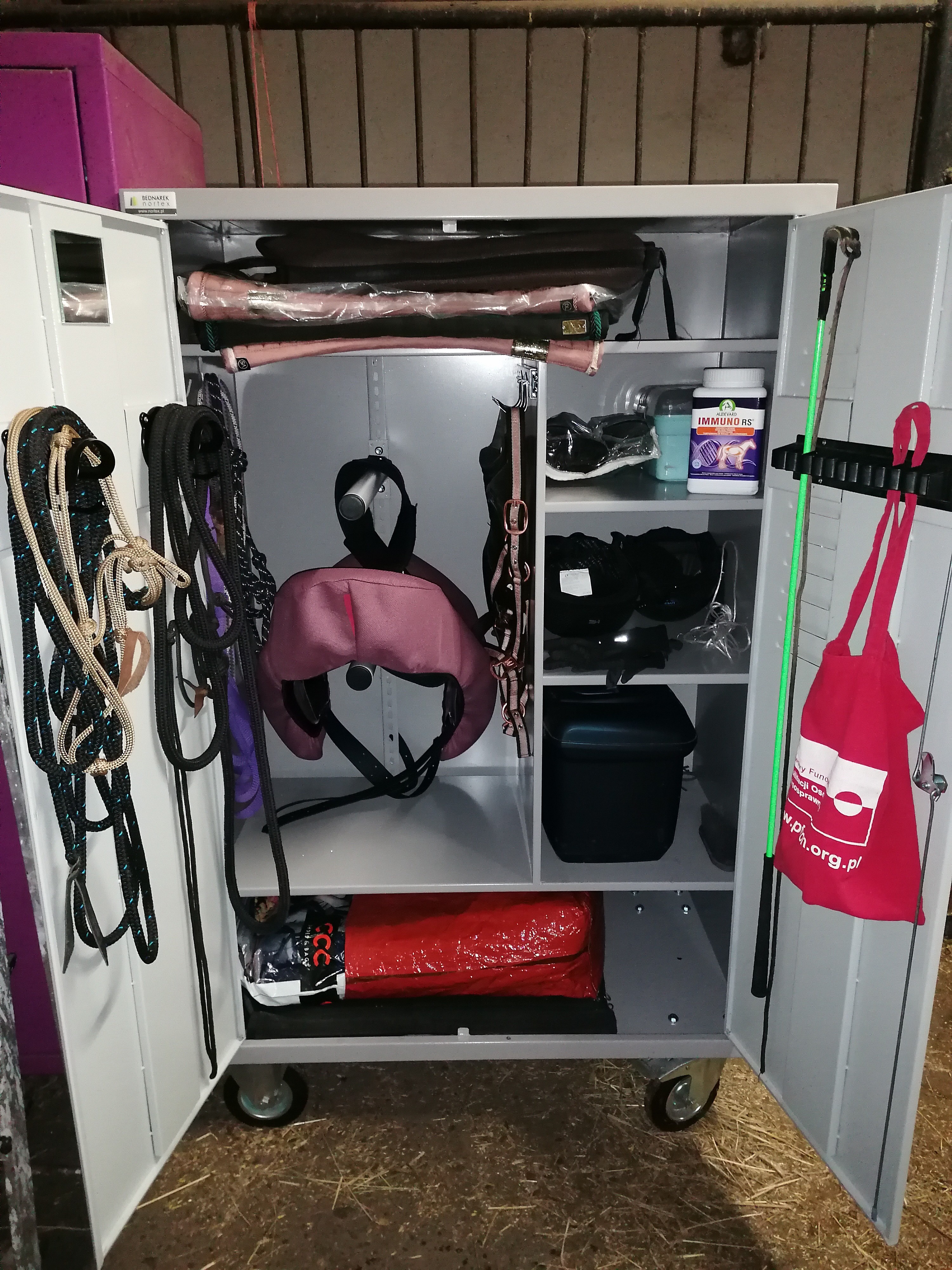 martrix, oo też mi brakuje parę centymetrów na głębokość. Siodlo z dopiętym padem (mam bezterlicówkę która tworzy komplet z padem który przywiązuje się od spodu siodła) ledwo się domyka tak że muszę napchnąć drzwiczki, a każdorazowe odczepianie padu jest niepraktyczne. No ale i tak obawiałam się, czy mi się siodlo zmieści więc mimo to jestem zadowolona. Czapraki ujeżdżeniowe też mi się ledwo mieszczą.