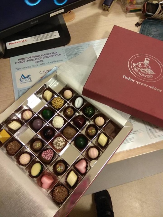 ja dla odmiany pokażę z czym dziś walczę. Przyszłam na noc do oddziału. Z ugotowanymi zimnymi już brokułami. I nachodzę na takie pudło. I WIEM, że nawet gdybym zjadła 10 sztuk nikt by nie miał mi za złe.