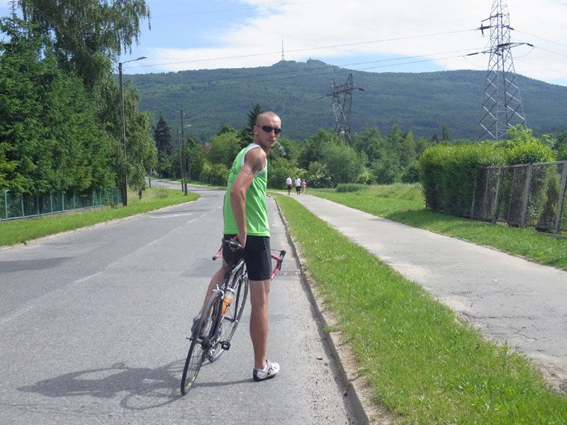 Mieliśmy jechać przez las, ale zastrajkowałam po pierwszym podjeździe 😂 nie mogłam z siebie wydusić słowa, więc ruszyliśmy asfaltem. Pierwszy podjazd, jak cię mogę, dałam radę. I jakoś to się dalej toczyło, powoli, bo Hubert z kolegą biegł. Wszystko fajnie, pięknie, aż nie nadjechałam na Przełęcz Tąpadła. Najpierw było mi miło, bo wyprzedziłam pod górkę faceta (jak się okazało niedzielnego rowerzystę w sprzęcie za kupę kasy) 😁 Później już było tylko gorzej. Teraz to ja "powolutku", bo Hubert z kolegą dawno na przełęcz wbiegli, a ja próbowałam się wtoczyć na górę. To była jakaś zajezdnia! Płaski Wrocław, a masyw Ślęży to jednak ogromna różnica 😁 Hubert zbiegł z przełęczy do mnie