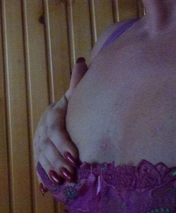 Tu zgniotłam, przesunęłam, ścisnęłam caluśki tłuszcz z cycka i zostawiłam TYLKO mięsień klaty. Normalnie jest on przykryty częścią cycka. Wyobraźmy sobie, że tego mięśnia nie ma...wtedy cała ta skóra i tłuszcz zwisłyby bardziej w dół. Żeby to zrozumieć dosadnie, trzeba by przyjechać, obejrzeć mnie nago i obmacać. 😁