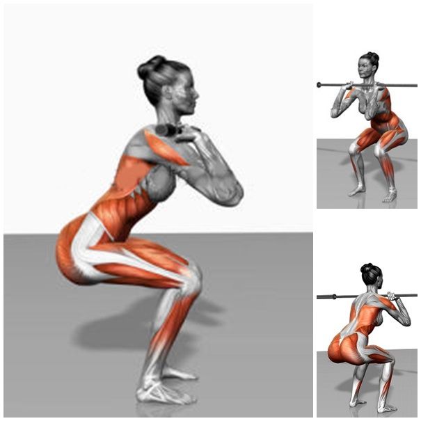 Przy przysiadach ćwiczą też takie mięśnie (tutaj akurat przykład z dociążeniem):
