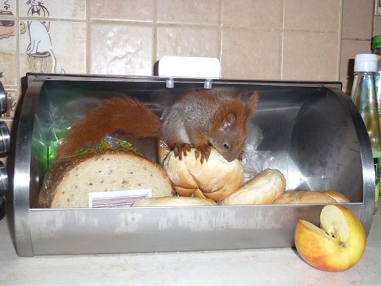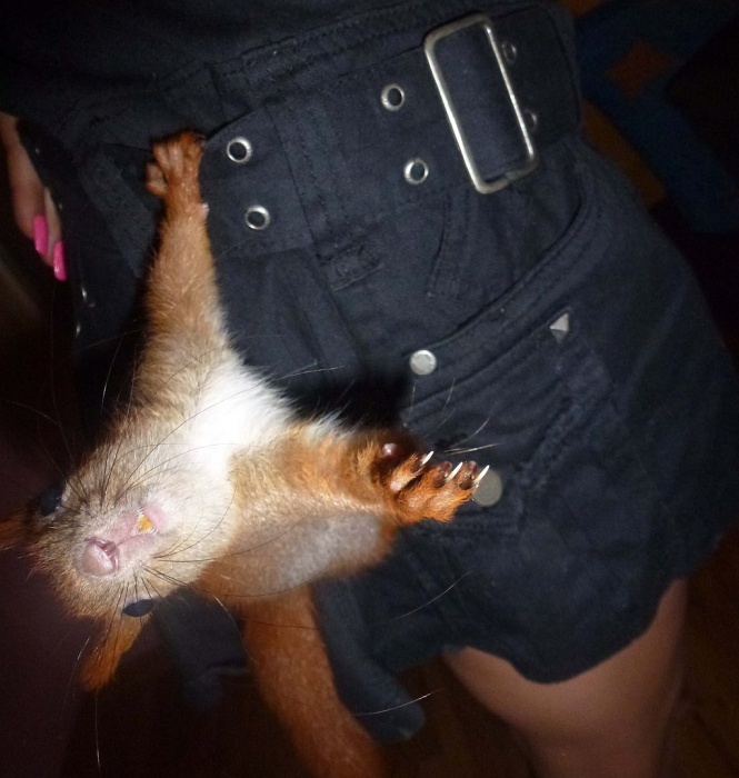 No i dokańczamy brzoskwinkę po pani. Pani zjada to co najlepsze, a wiewiórka obgryza końcówkę. 😉