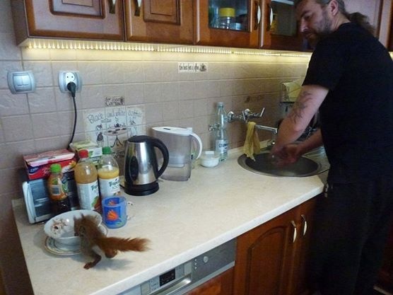 Tu z Puszkiem, koszatniczką. Zanim mieliśmy wiewiórkę zdawało nam się, że koszatniczka ma ADHD. Ale nie... przy niej Puszek wygląda jakby był zdrowy.