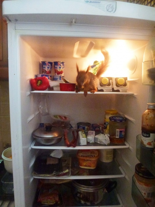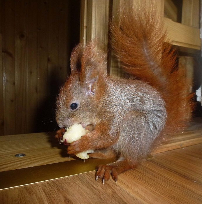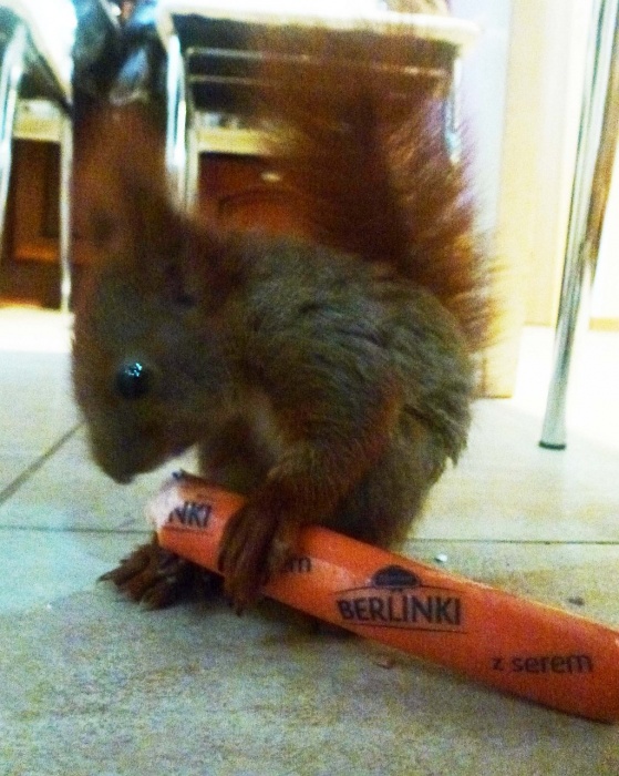 No i dokańczamy brzoskwinkę po pani. Pani zjada to co najlepsze, a wiewiórka obgryza końcówkę. 😉