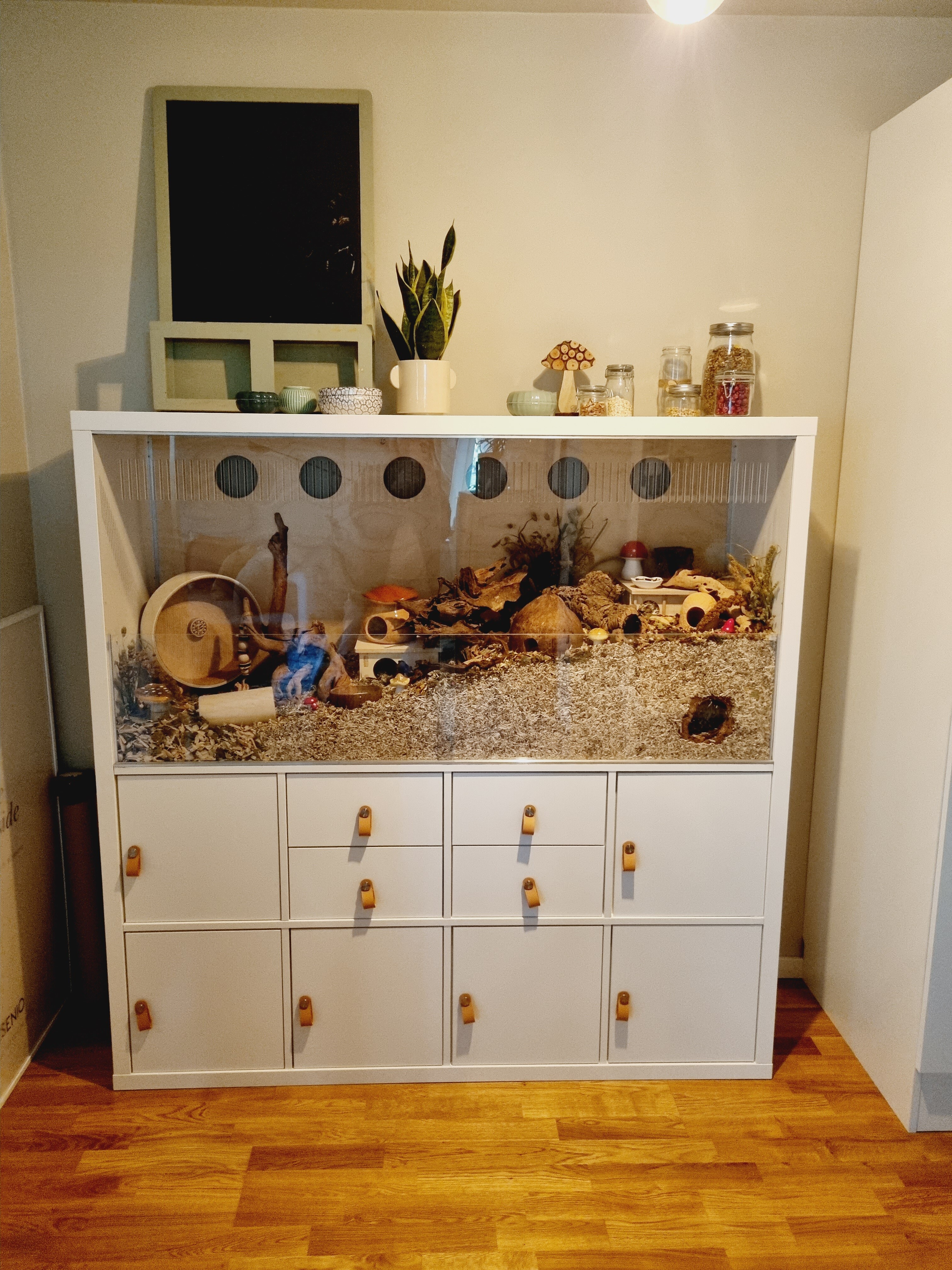 Dżungarskiego, mamy taką klatkę 2 poziomowa z osobnym poza obrys klatki takim pomieszczeniem na jego norkę do spania, do tego jest tunel