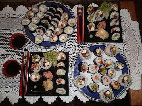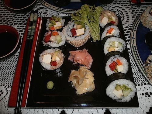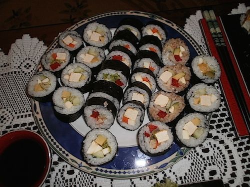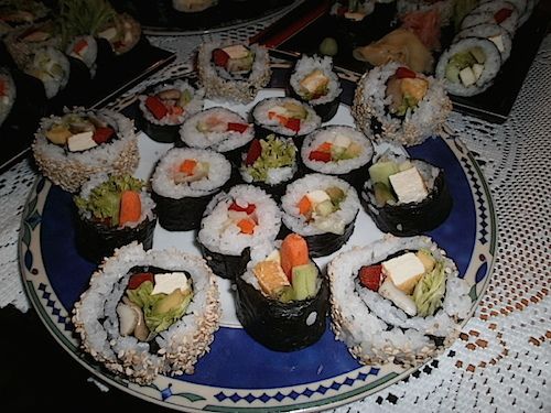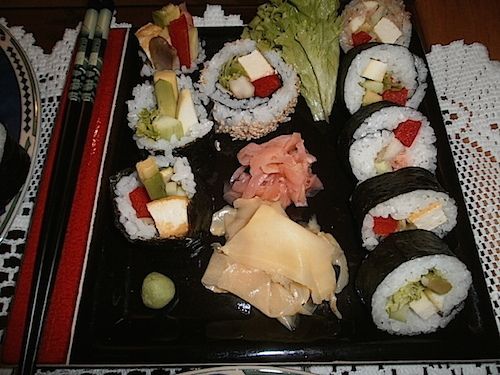 ), składniki bazowe, czyli najczęściej rybne (łosoś surowy albo wędzony, krewetki, paluszek krabowy itp.), ewentualnie kurczak, też dobrze smakuje, dodatki: sałata lodowa, ogórek, avocado, szczypiorek, papryka, serek (na przykład twój smak śmietankowy), ogólnie to co lubisz.