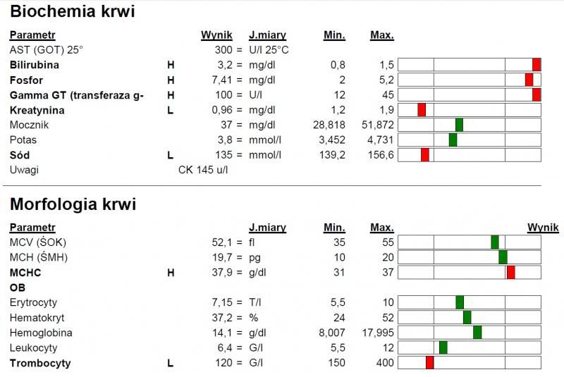 margaritka, zdrowia życzę pytałam, ponieważ ostatnio sama woziłam do badania do lecznicy na wesołej i takie te wyniki mocno "okrojone" w porównaniu do twoich