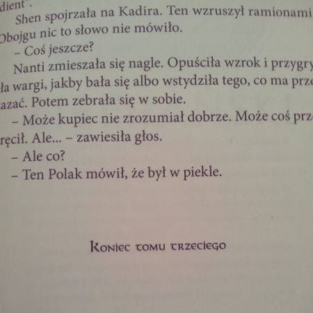 U mnie nadal w temacie książkowym. Dzisiaj w nocy czytałam prawie do 3, a potem od 6:30 i skończyłam III tom Pomnika Cesarzowej Achai. Normalnie pisałabym o tym jako coś smutnego, bo nie znoszę, kiedy przywiążę się do bohaterów, a nie mam szansy dowiedzieć się, jak dalej potoczyły się ich losy. Tym razem jednak mam nadzieję, że poznam ciąg dalszy ich historii, bo po pierwsze akcja została urwana w takim momencie, że część rzeczy się nie wyjaśniła, a część wręcz jeszcze bardziej zagmatwała, a po drugie ostatnie słowa to "koniec tomu III", a nie "koniec", jak w przypadku innej serii tego autora. Bardzo, bardzo cieszę się zatem, że prawdopodobnie jeszcze się z tamtym światem "spotkam", bo uwielbiam Ziemiańskiego za jego styl pisania i poczucie humoru 😀