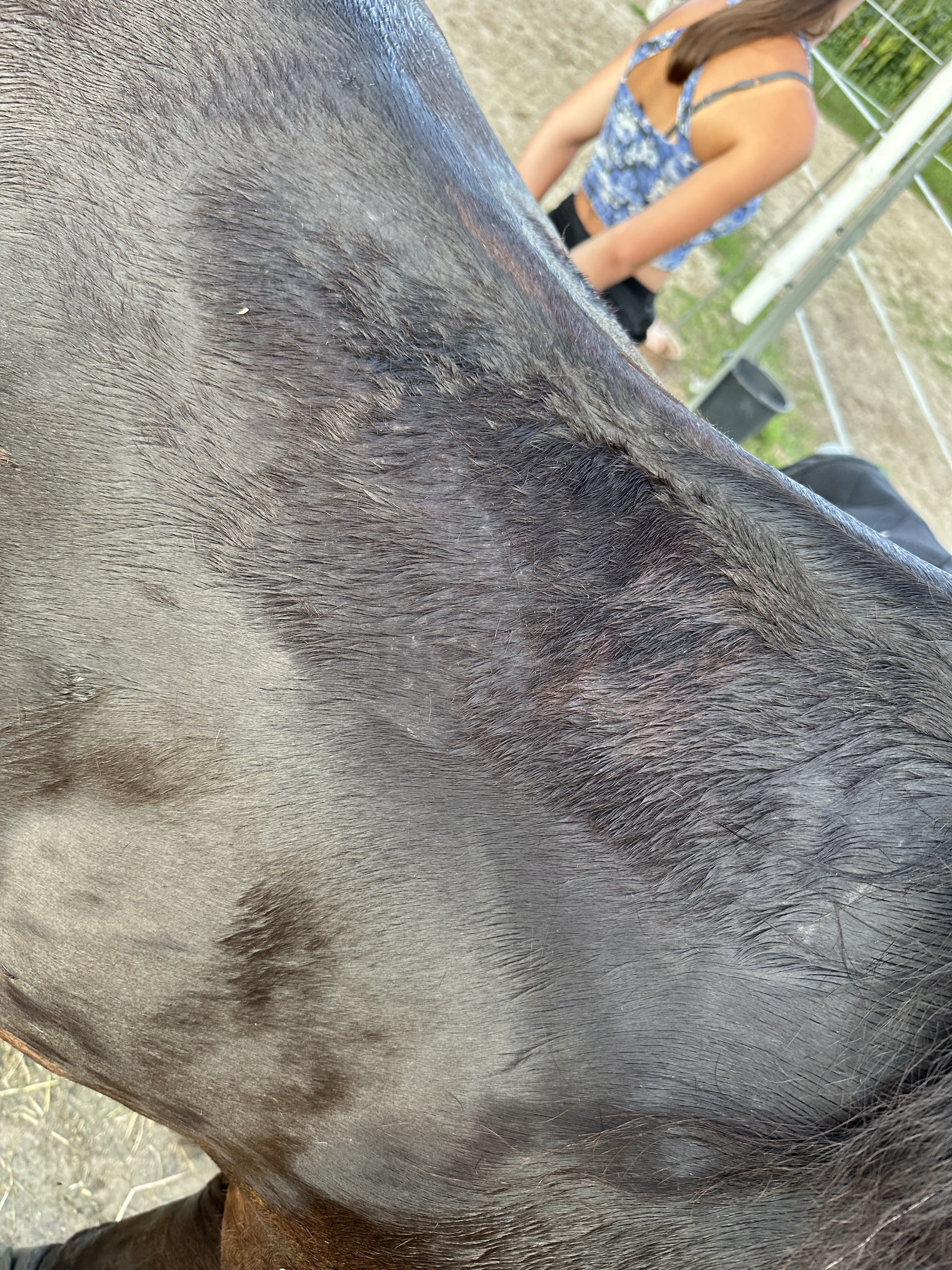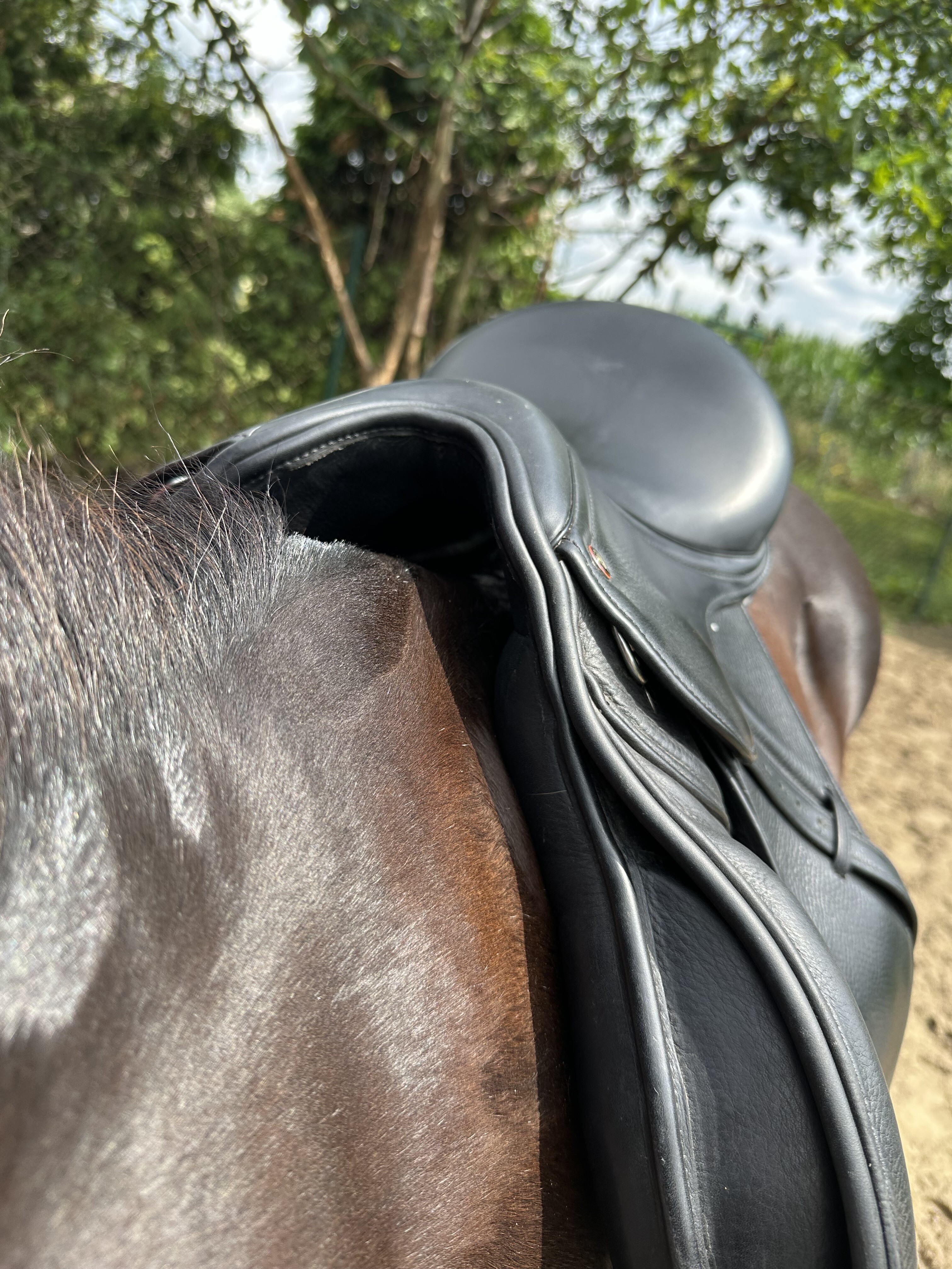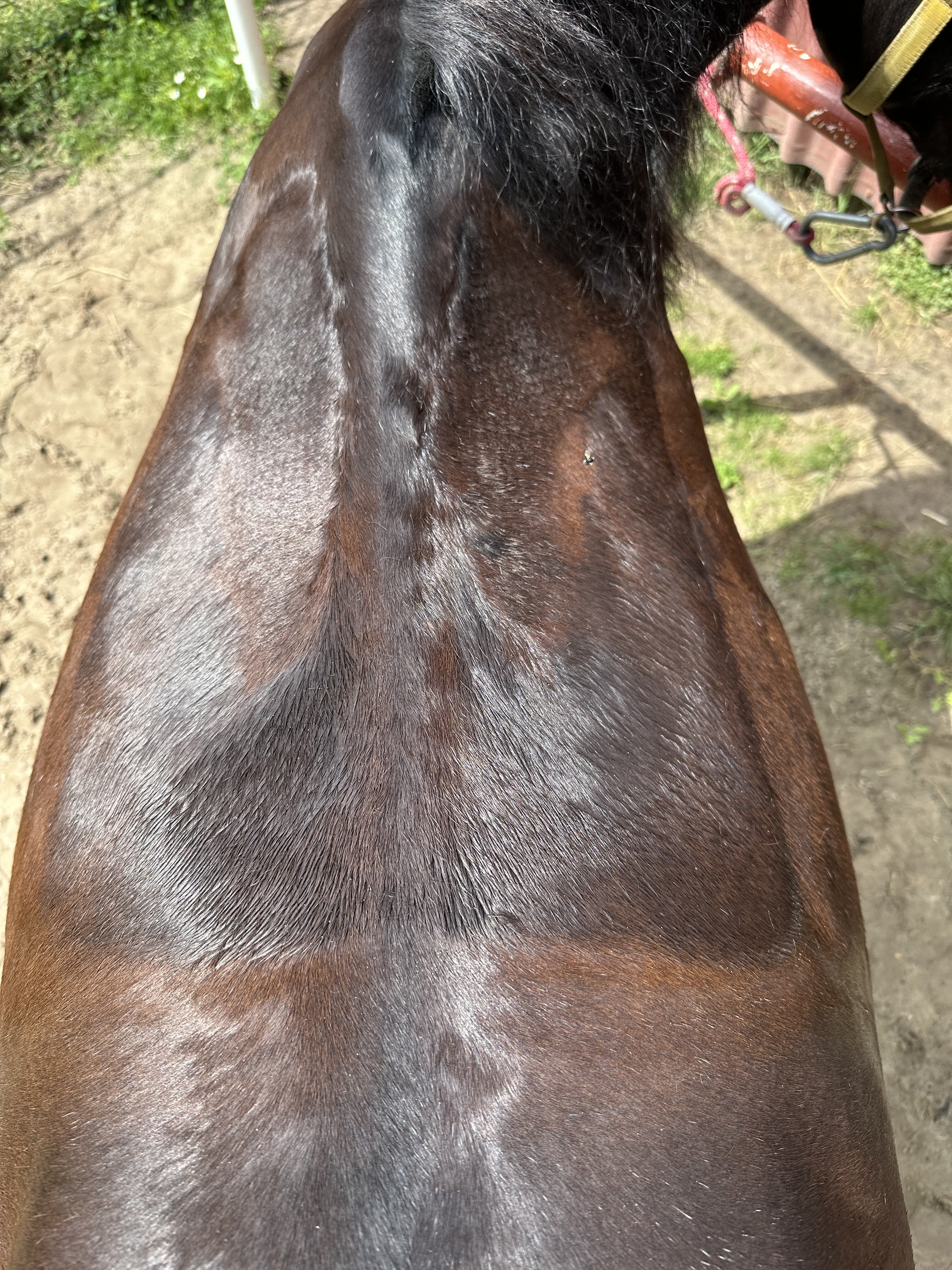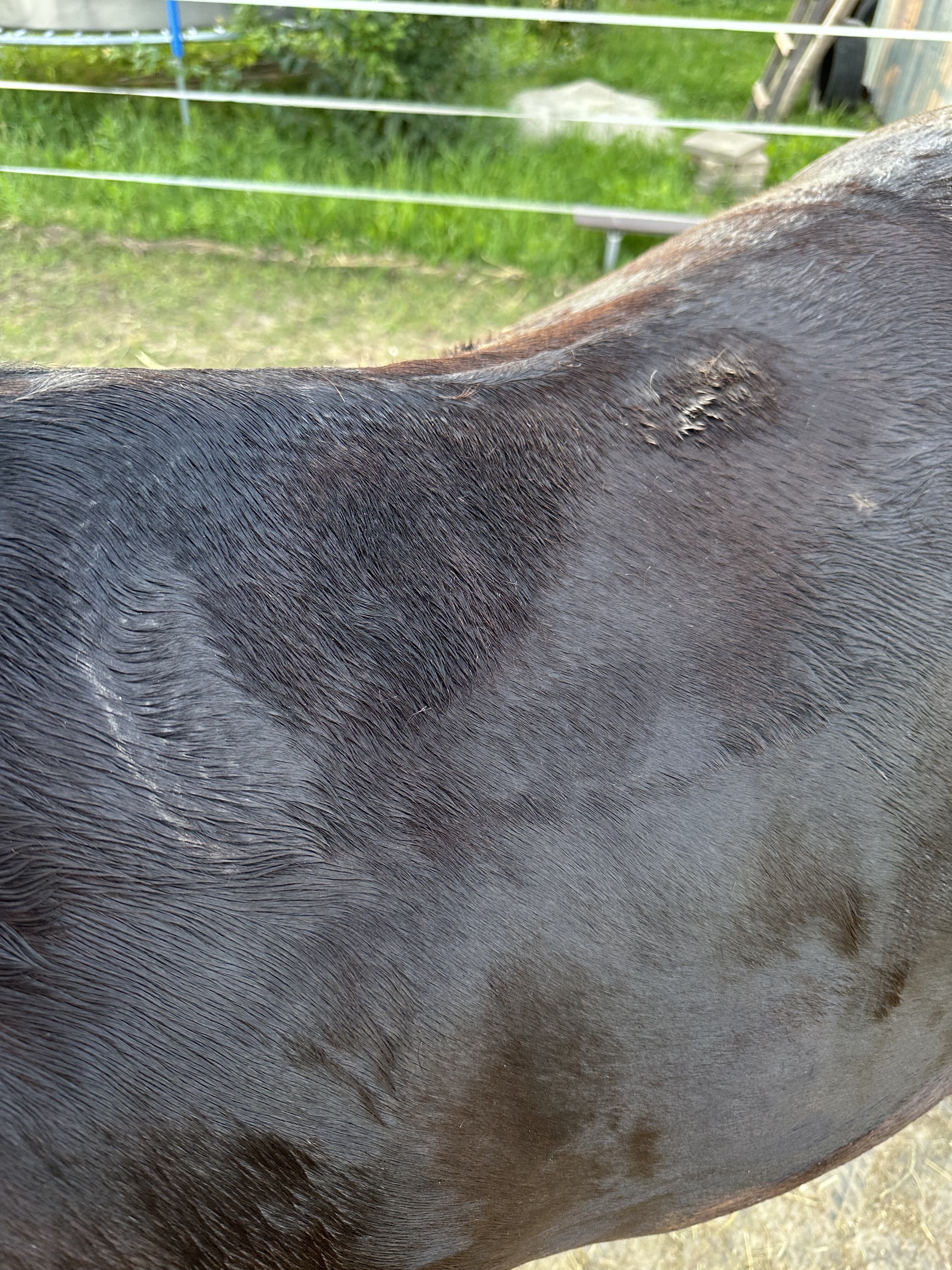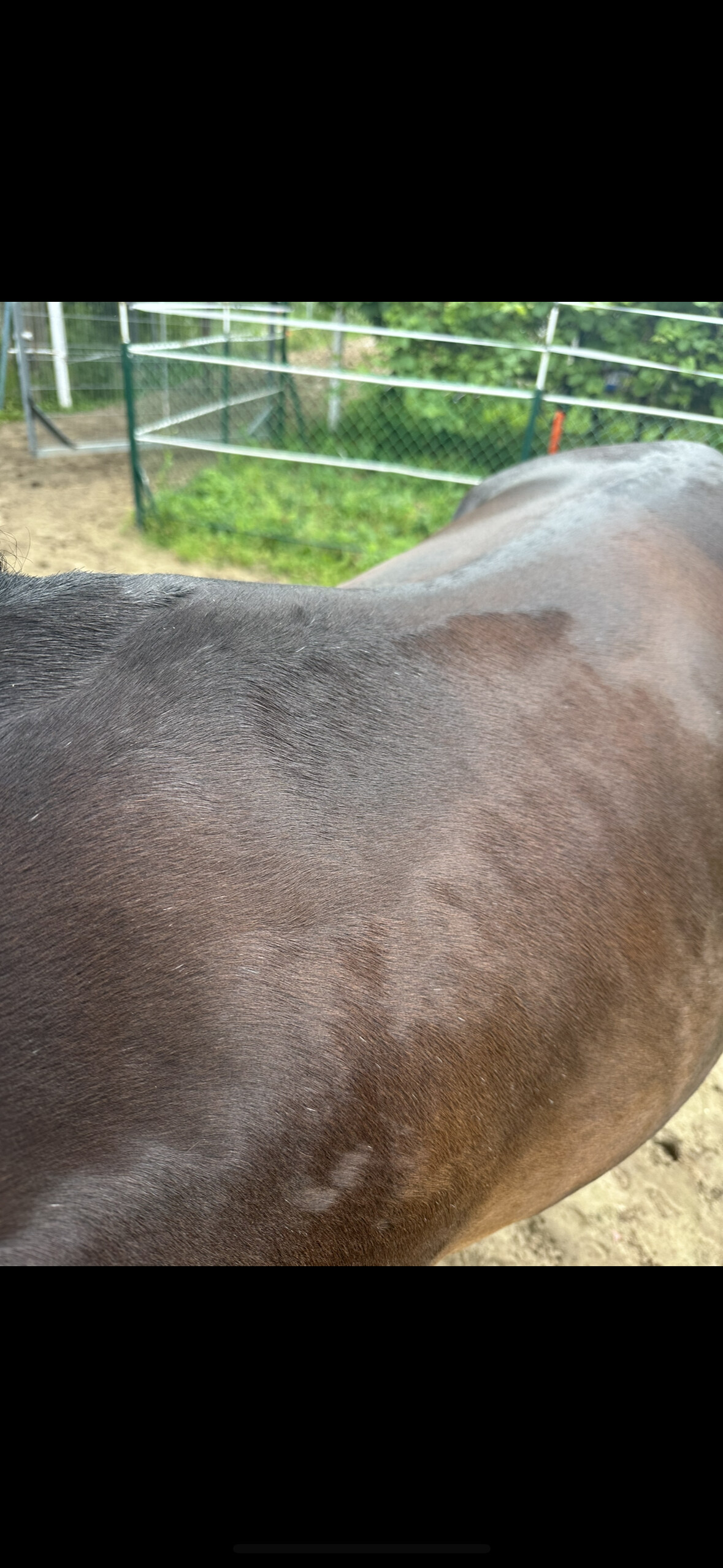 Koń 6 lat, przed zmiana siodła miała szerszy kłąb, teraz zrobil sie bardziej wystajacy (nowe siodlo mam jakies 3 miesiace pewnie). Łęk dobrany przez saddlefittera, ale siodlo znalazlam sama (wedlug mnie najlepiej lezalo, uzytkuje podkladke zelowa i wczesniej podnoszaca przod ). Czy ten klab wychodzi od ucisku? Suche plamy mnie martwia… wczesniej mialam szerokie siodlo (za szerokie) ale plam nie było + kłąb był znacznie szerszy. Pierwsze foto kłąb przed zmiana siodła. Reszta obecne fotki. Co ja z tym moge jeszcze zrobic? Saddlefiterka nie odpowiada..