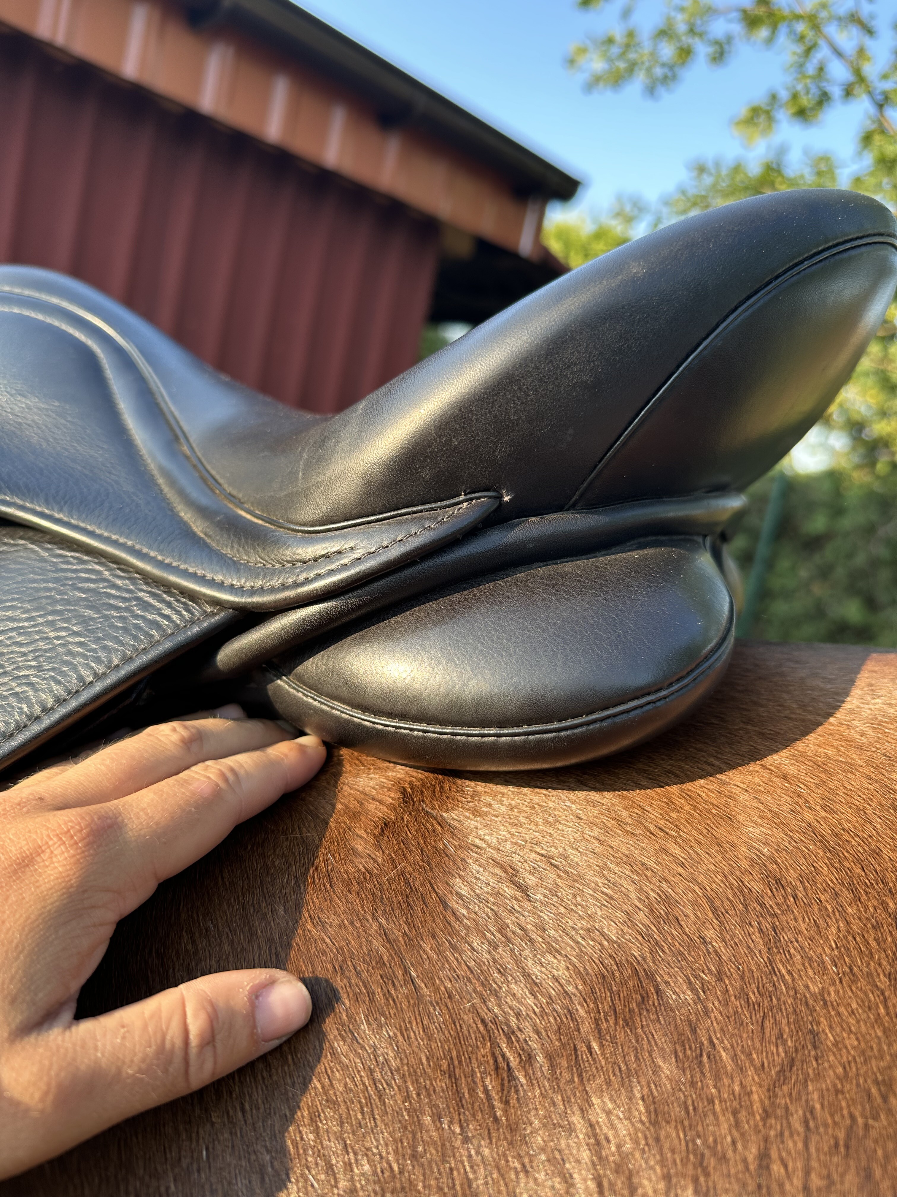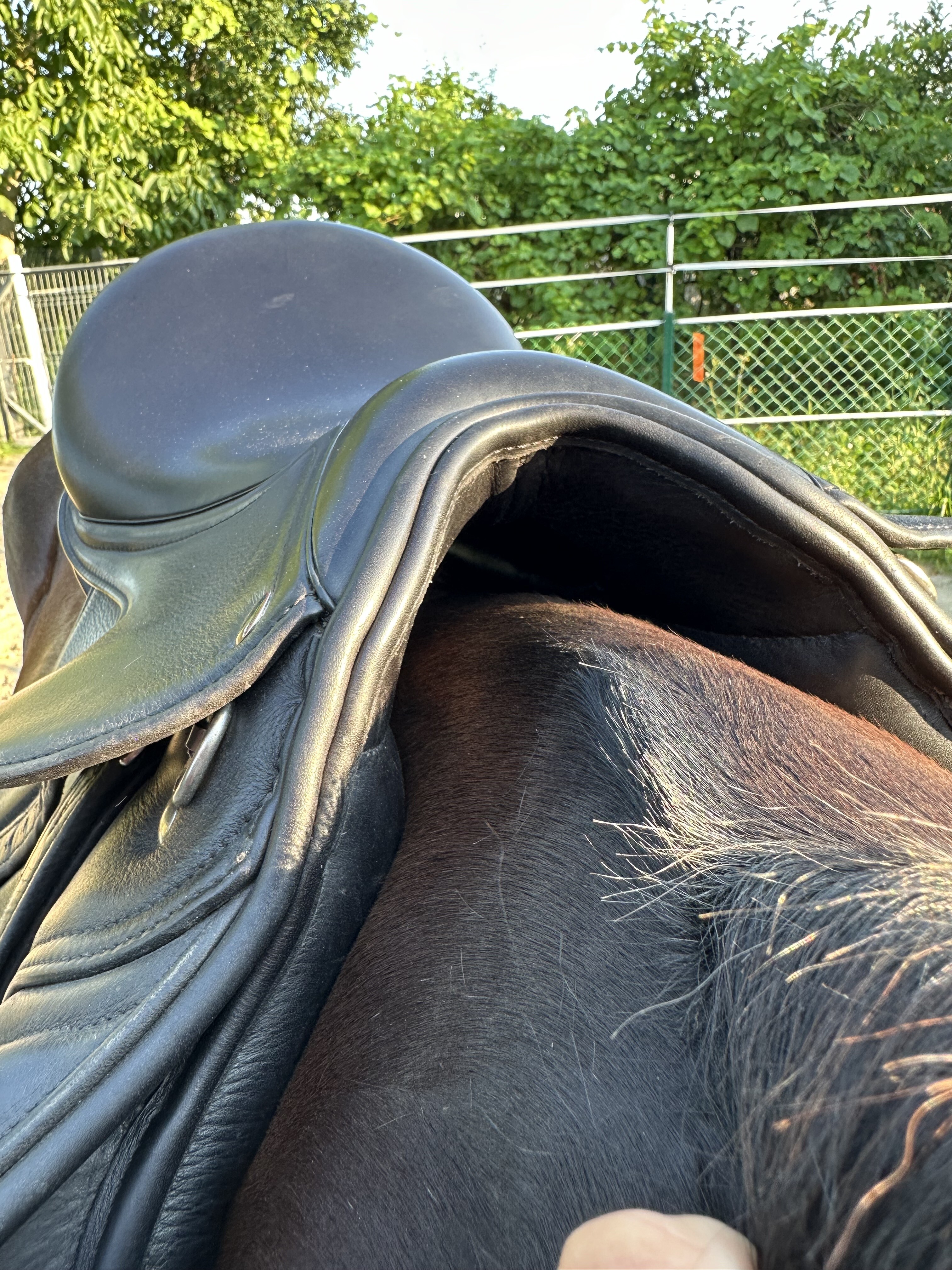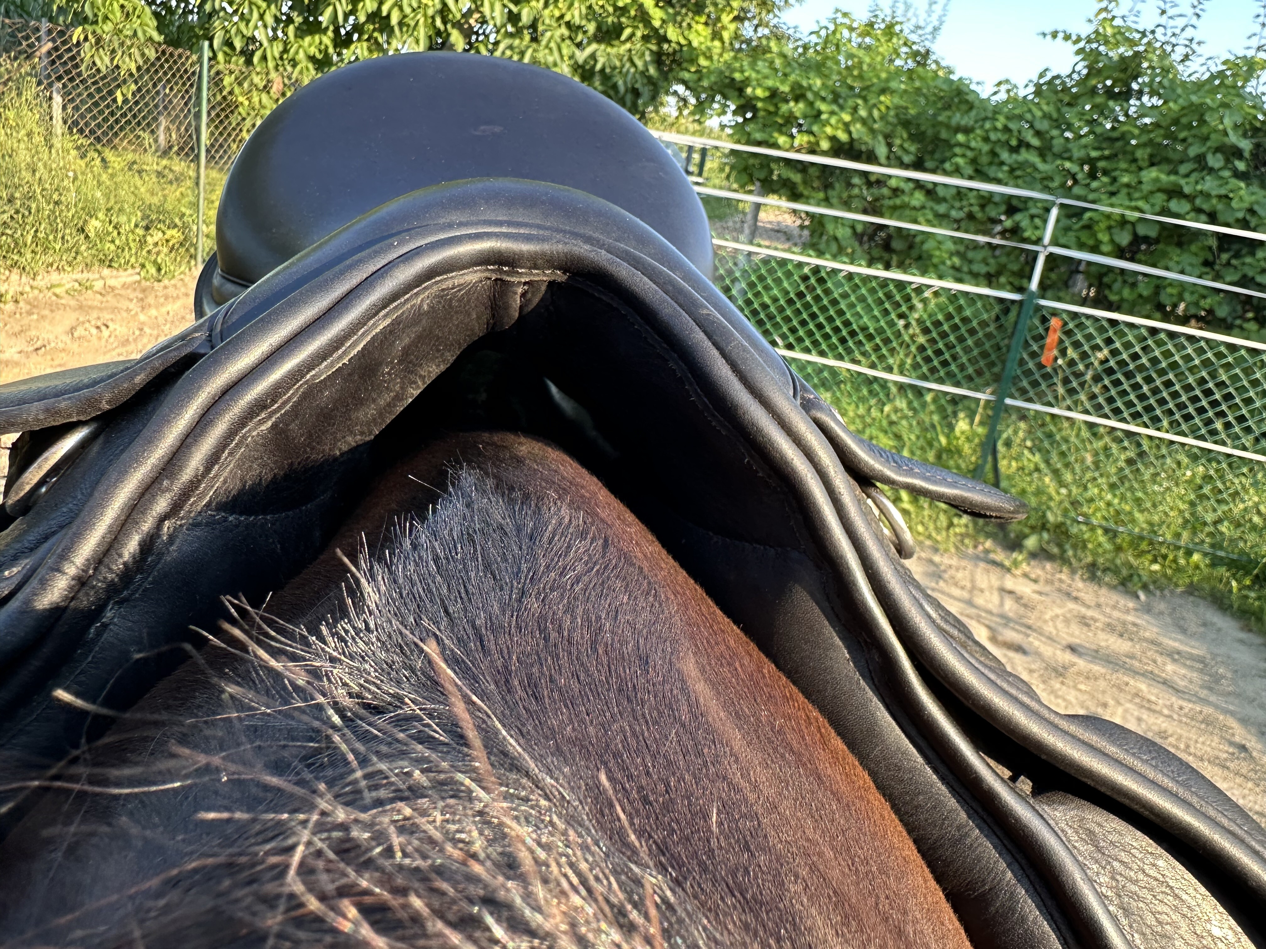 Pytanie! Czy da się to jakoś skorygować? Ten wystający rożek w siodle fairfax 'uwalniajacym łopatkę ' (model gareth) wchodzi nam 'pod łopatkę' blokując ruch konia na przód. Czy to jest zła konstrukcja siodła dla nas czy da się to jakoś skorygować? Bardzo ciasno też one przylegają do konia nie dając miejsca na ruch.. Siodło ma na tybinkach regulowane panele ale nie wiem czy to coś zmieni..
