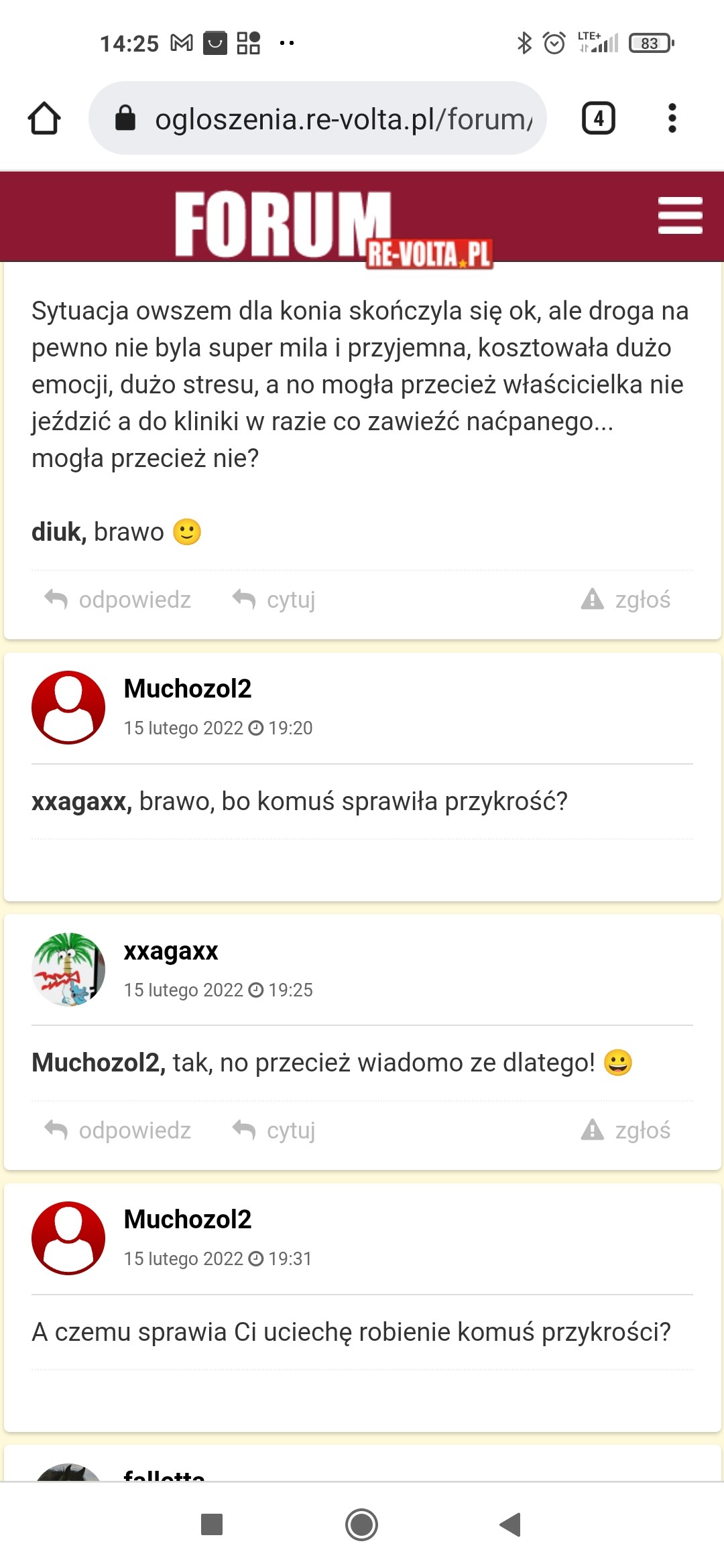 Momentami słabo się czyta niektóre teksty i może nie wiesz ale dla niektórych forma w jakiej coś przekazujesz jest no... Dość agresywna. Taka zakładająca że ty wiesz najlepiej a wszyscy inni to ch*ja wiedzą. Może nie zdajesz sobie z tego sprawy że twoje wyrażanie opinii tak brzmi (mój facet tak ma). I ja też. Może masz doświadczenie, mnóstwo doświadczenia z końmi na którym je podpierasz. Jak tak to fantastycznie, świetnie że ktoś taki się wypowiada.