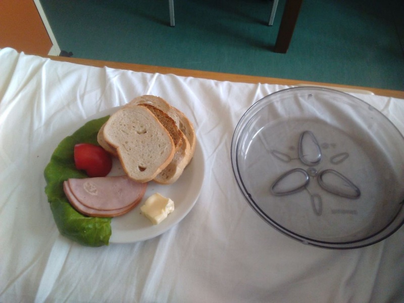 Naszło mnie, wybaczcie. Kolacja- 4 kromki chleba, 3 wędliny. Wędliny maławo. Ale... i tak wszyscy dokupują sobie wędliny czy nabiał w sklepikach na dole lub w ogóle w sklepie przed szpitalem. Jeśli kogoś nie stać, widzę, że w kuchence oddziałowej leżą całe porcje, niepotrzebne, których ktoś w ogóle nie wziął ( bo je swoje) W zamrażarce są pomrożone plasterki wędlin, kostki masła, leżą pojemniczki z dżemem. Myślę, że gdyby trafiło na kogoś biednego, nie umarłby z głodu. Chleb świeżutki, smaczny. Wędlina, moim zdaniem, bardzo smaczna. Zgodzę się, że dla głodomora porcje są maławe. Ale moim zdaniem, w smaku wszystko jest ok.