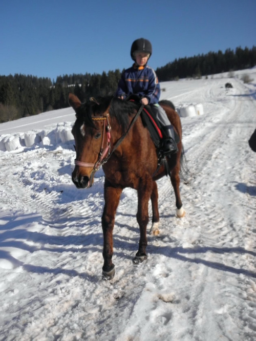 strzemionko, dziekujemy :kwiatek: Odkad zakumala co to jest kontakt i polparada, naprawde zaczela bawic sie jazda. No i moje matczyne serce peka z dumy, bo ma calkiem fajna reke i niezle oparcie w strzemieniu, pomimo tego, ze jezdzi w za malej gapie bez klockow i tylnego leku. Marzy mi sie dla niej wkoncu jakies normalne siodlo (najlepiej ujezdzeniowka), ktore ja poprawnie usadzi. Ale do tego musi chyba jeszcze troszke podrosnac, bo na dzien dzisiejszy to musialaby miec siedzisko chyba nie wieksze niz 13".