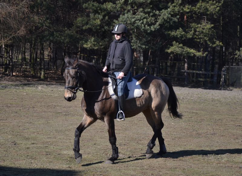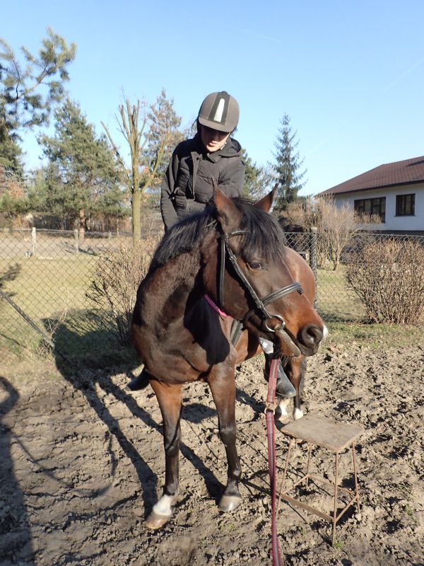 Sankaritarina, moja kobyłka żyjeee 🙂 Jestem na etapie błagania męża o zdjęcia, bo w końcu chciałabym się wam pochwalić, jak nam idzie oraz załatwiania sobie jakiegoś transportu, bo dobiłyśmy do podstaw (jeszcze galop jest "taki se", ale na tej beznadziejnej ujeżdżalni to nic lepszego nie wyrzeźbię 🙁) i fajnie by było zacząć ją zabierać w różne miejsca, jakieś treningi, itp. Mam również nadzieję, że zarówno mnie, jak i mężowi plany zawodowe się powiodą (a wszystko wskazuje, że jesteśmy na dobrej drodze 😀) to wtedy przeniosę ją do lepszej stajni. Trochę mi będzie brakowało trzymanie konia "pod nosem", jednak potrzebuję lepszej ujeżdżalni, lepszego padoku, no i jakichś stajennych znajomych 😉 Poza tym, mój landlord zaczął mnie wkurzać, bo ma wielce "genialne" pomysły - a to jakiś traktor walnie na środku pastwiska (niech konie mają atrakcję), a to mi szambo wylał centralnie pod bramą do ujeżdżalni... no wesoło mam ostatnio 🤔 Tak więc, tak, czy siak - przeprowadzka to mus 🤔