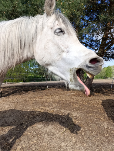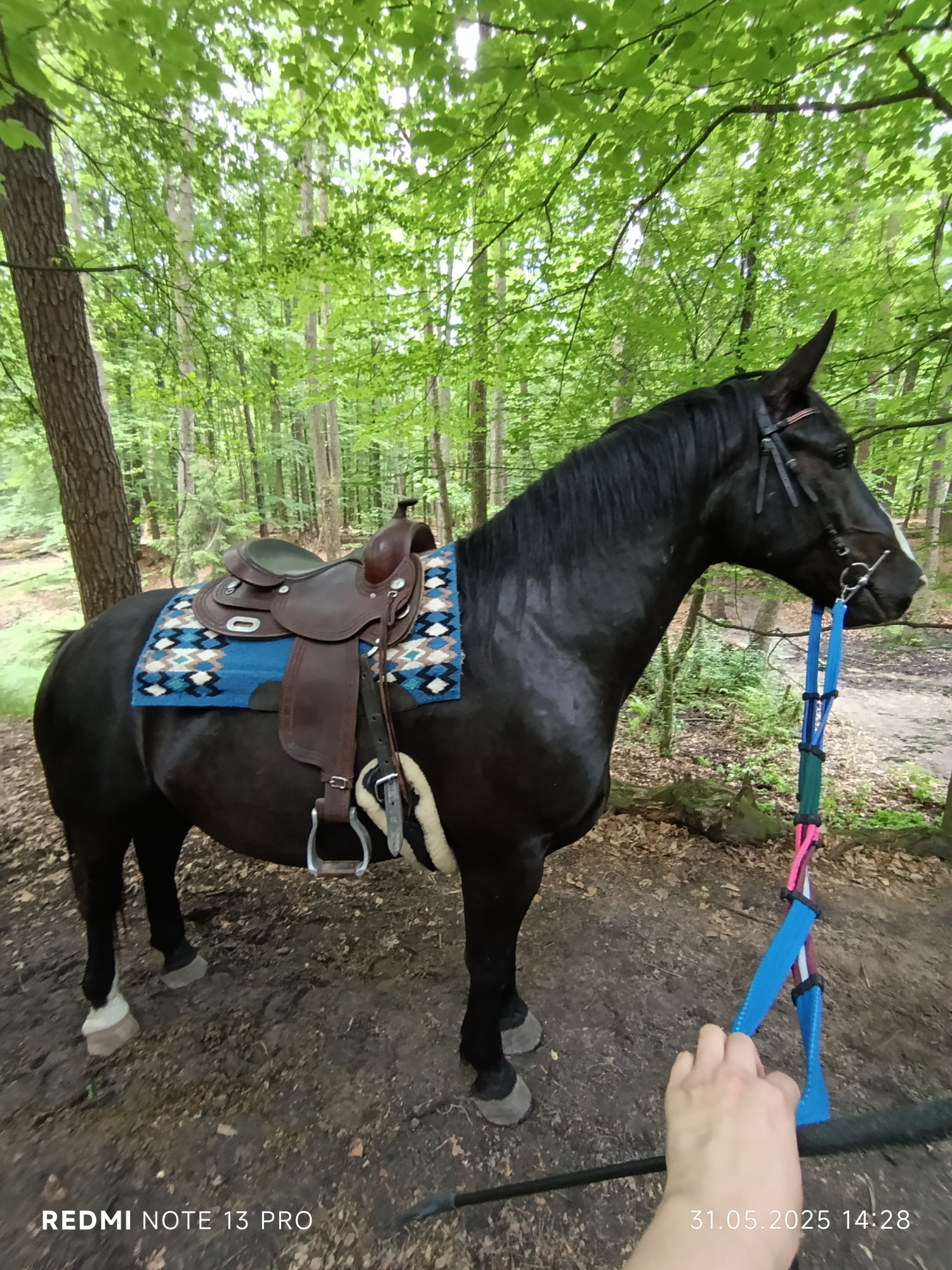 Trzeci miesiąc w siodle...jak galopuje to szyby drżą w oknach 🙃😁, wybija jak diabli w kłusie...na szczęście koń docelowo do spacerów po lesie. Z ziemi totalny słodziak