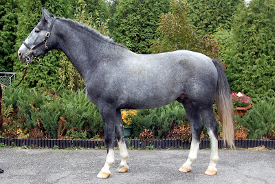 Ogier z wybitną urodą i rewelacyjnym ruchem w kłusie i stępie.